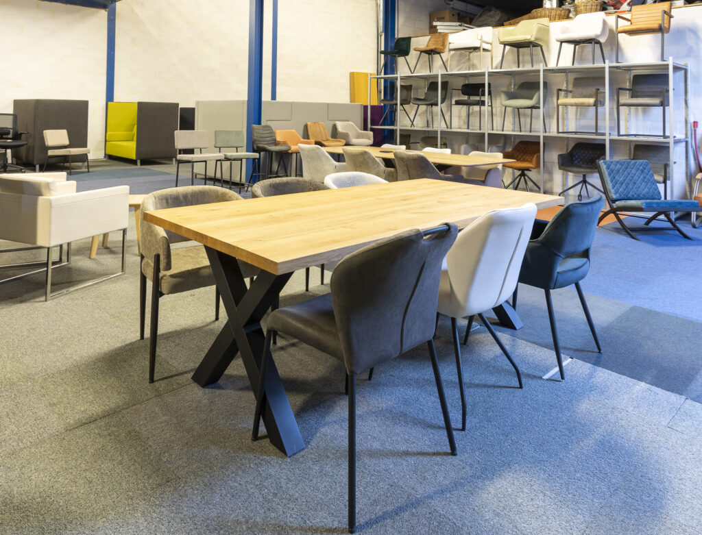 Door gebruikte onderstellen te combineren met nieuwe bladen, kunnen we een volledige inrichting verzorgen tegen een betaalbare prijs.