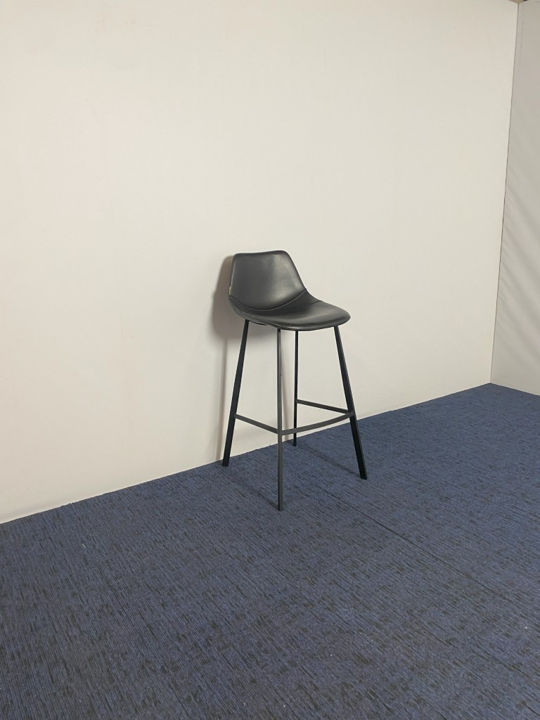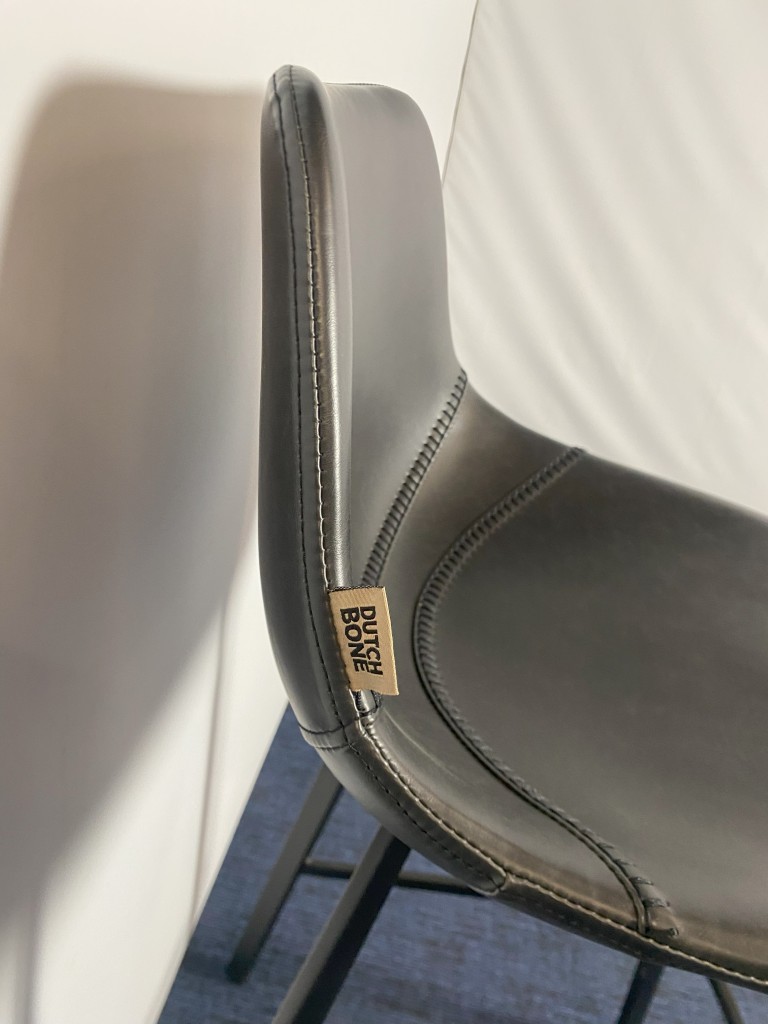 Barkruk Dutchbone Franky, zwart leder, zwart frame