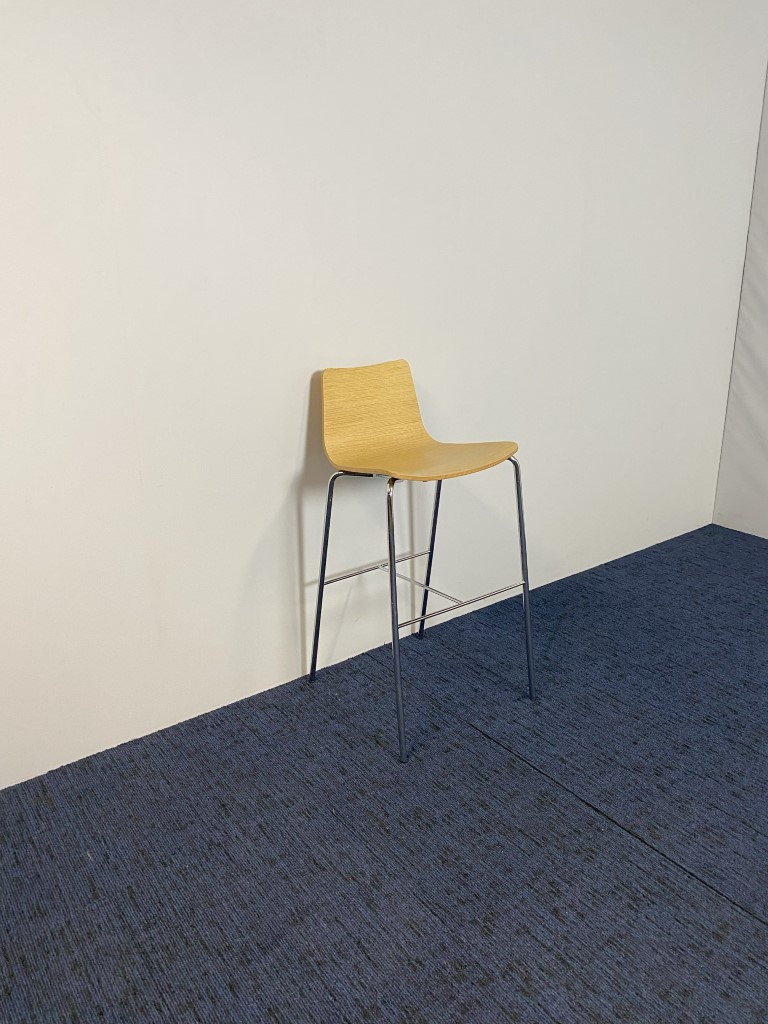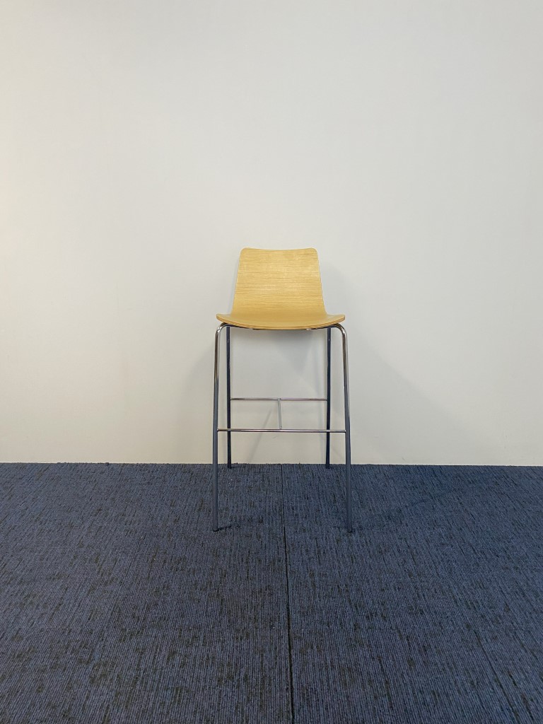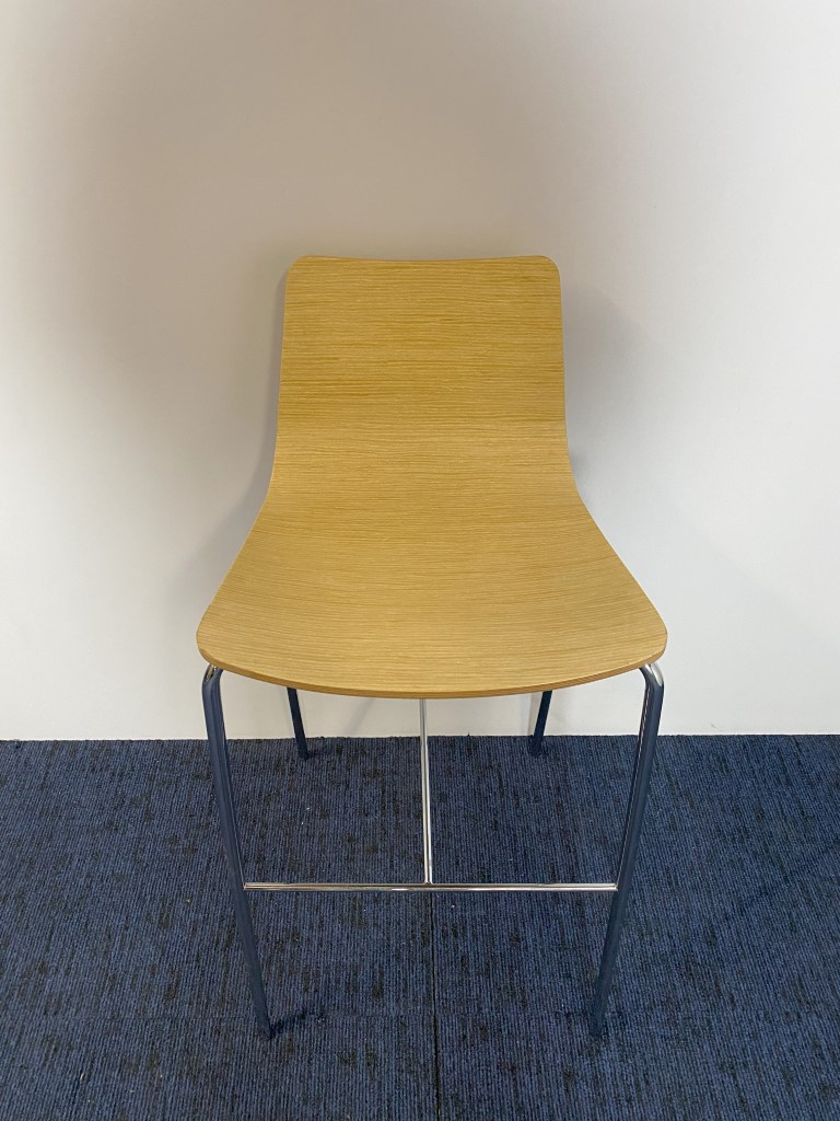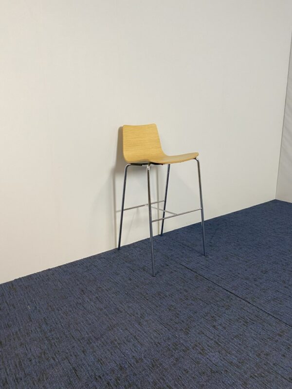 Barkruk, hout, chroom frame, zithoogte 74 cm.