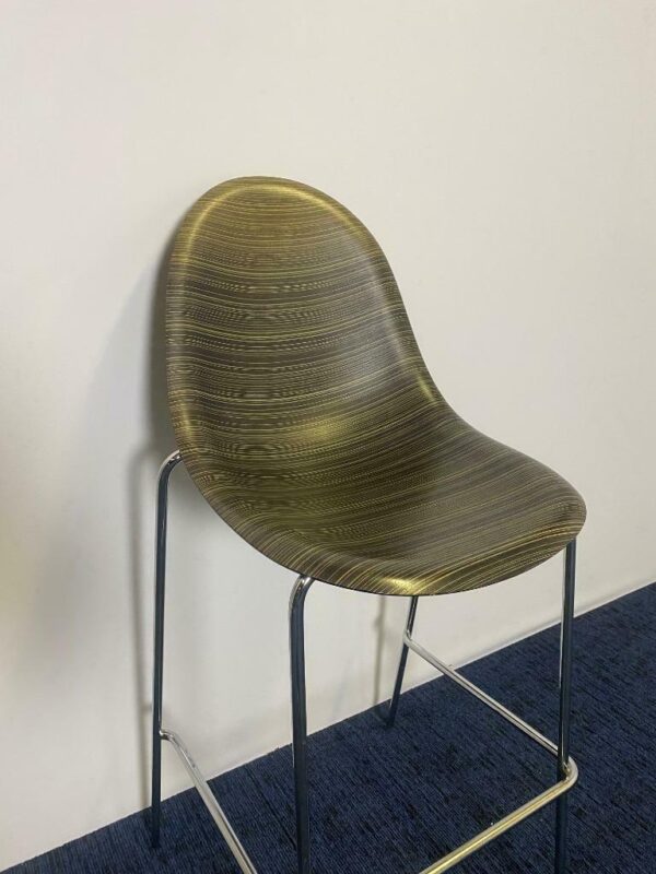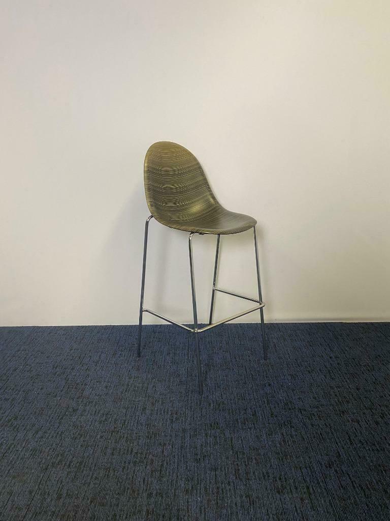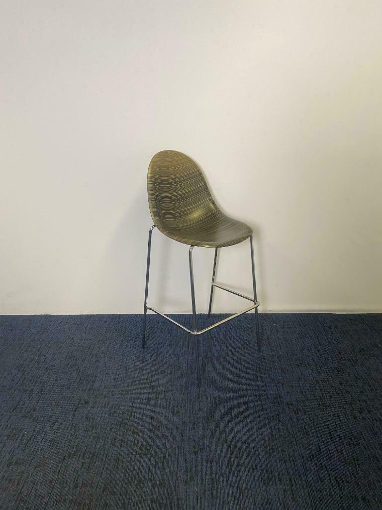 Barkruk Plank, chroom onderstel, 77 cm. zithoogte