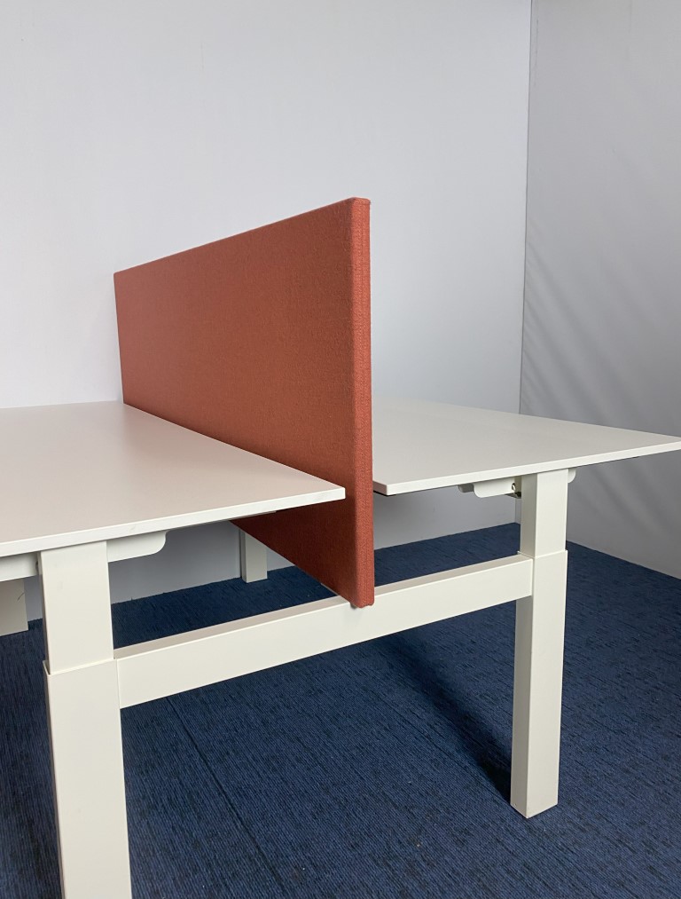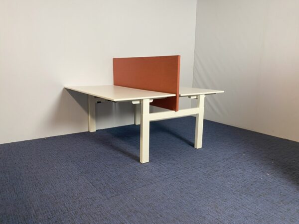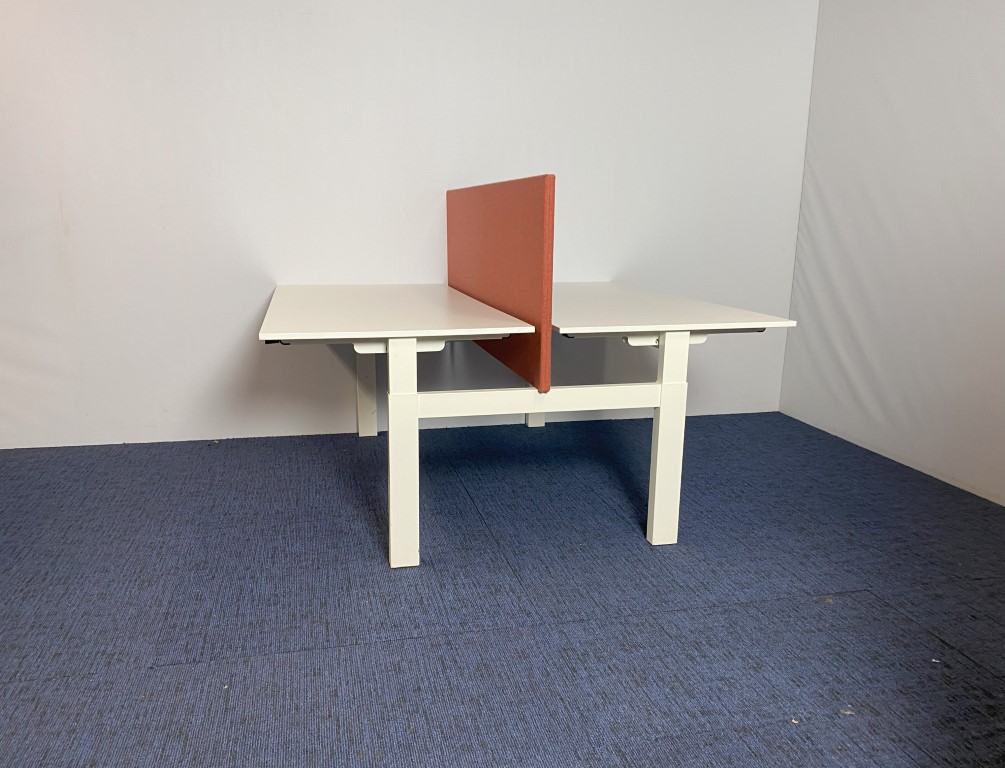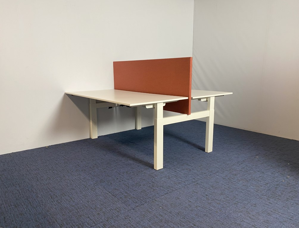Bench bureau Vepa (slinger – incl. akoestische wand), wit blad, wit onderstel, 160 x 170 cm.