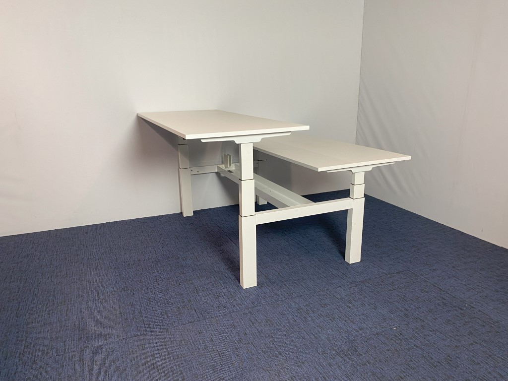 Bench zit/sta bureau Voortman (elektrisch), wit blad, wit onderstel, 160 x 170 cm.