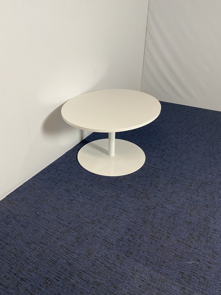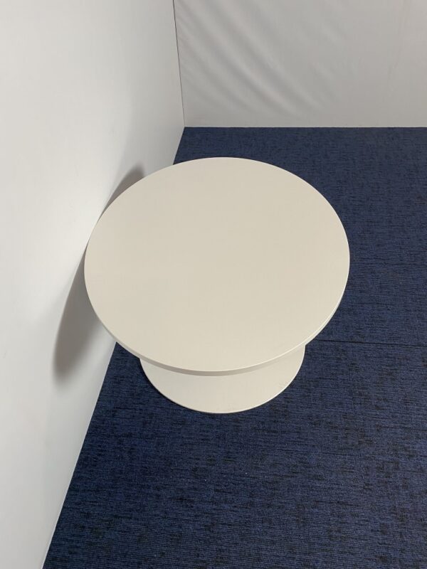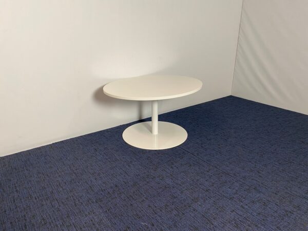 Bijzettafel, ellips vormig, wit, 110 x 90 cm.