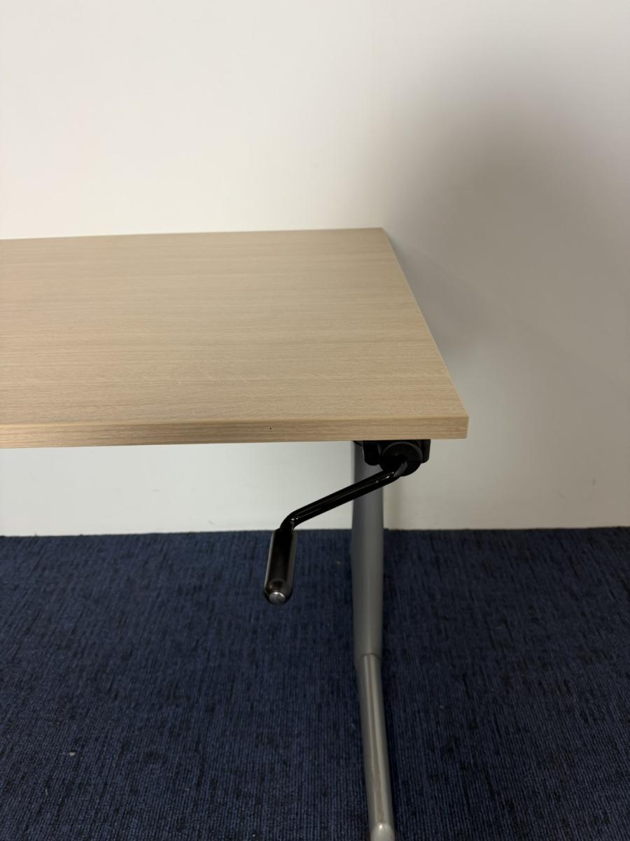Bureau Ahrend 500 (slinger), licht eiken blad, aluminium onderstel, 160 x 80 cm.