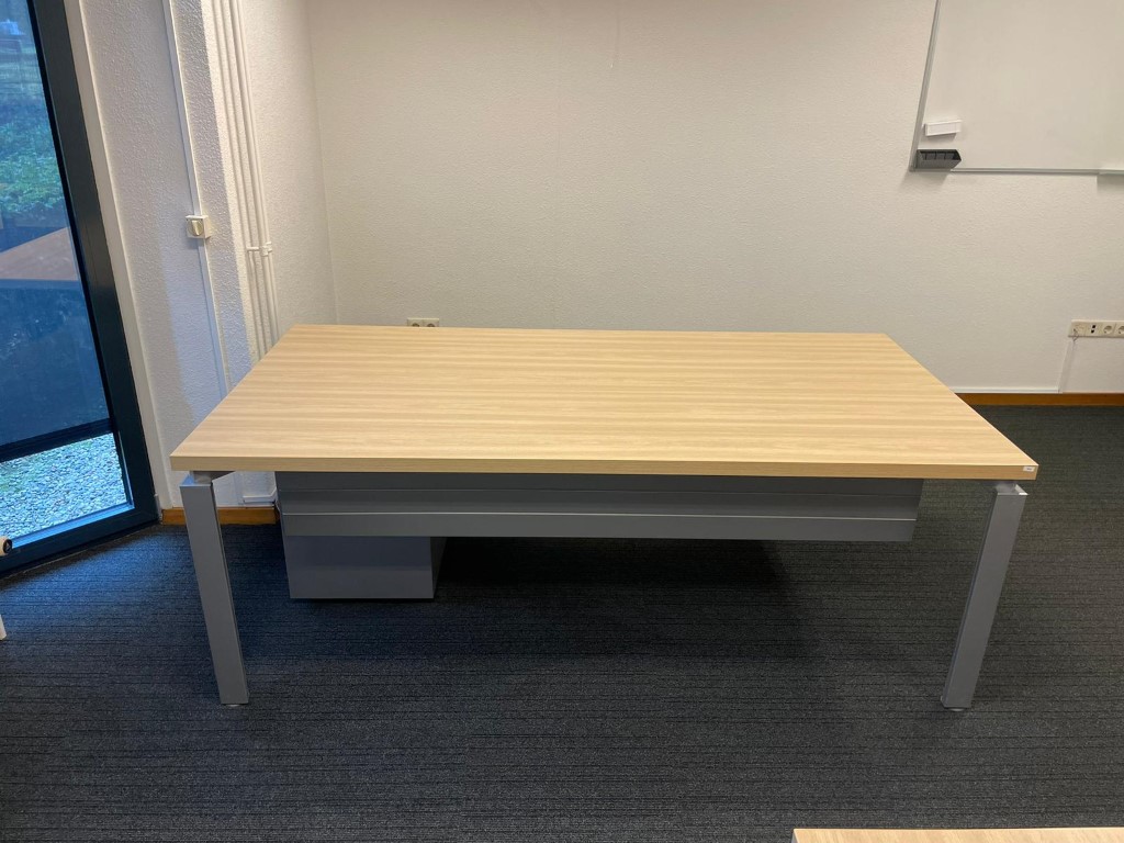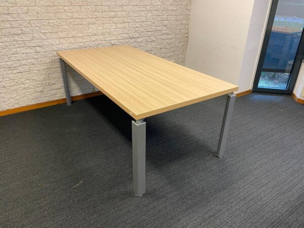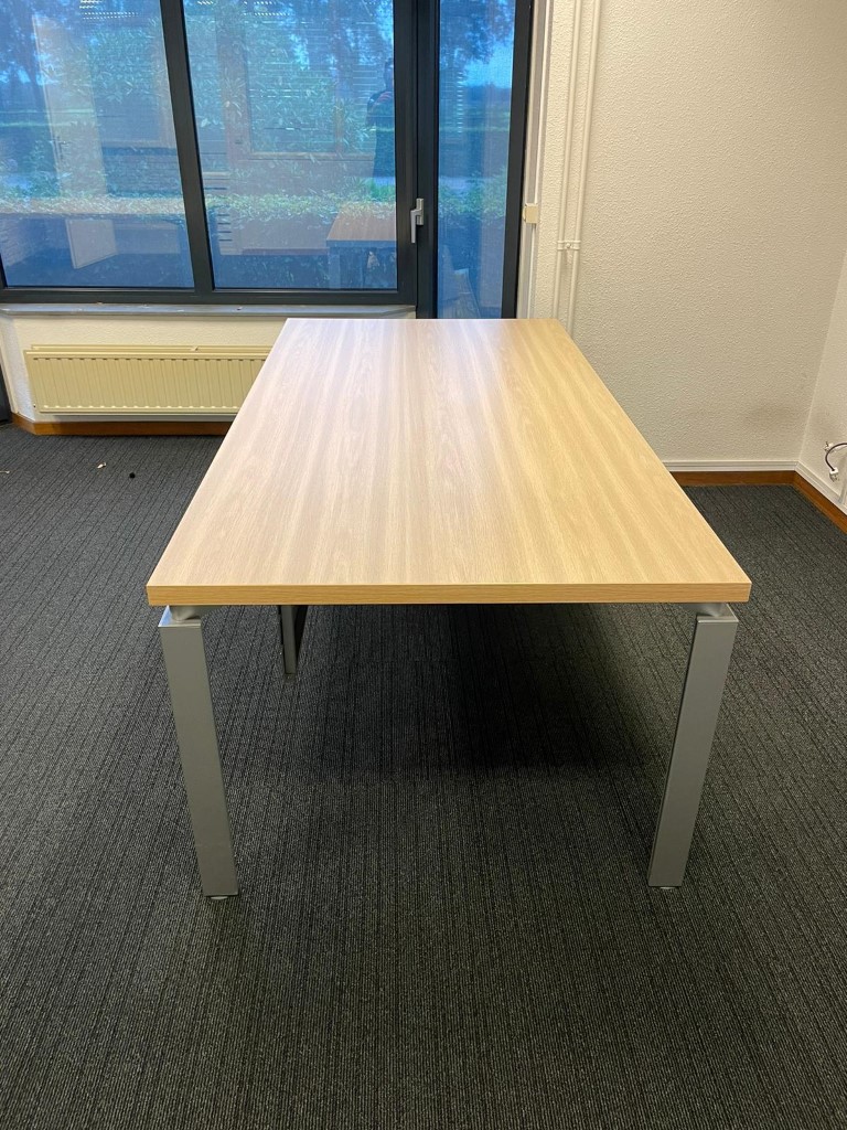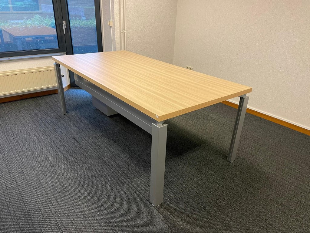 Bureau, licht beuken blad, aluminium 4-poot, 200 x 100 cm.