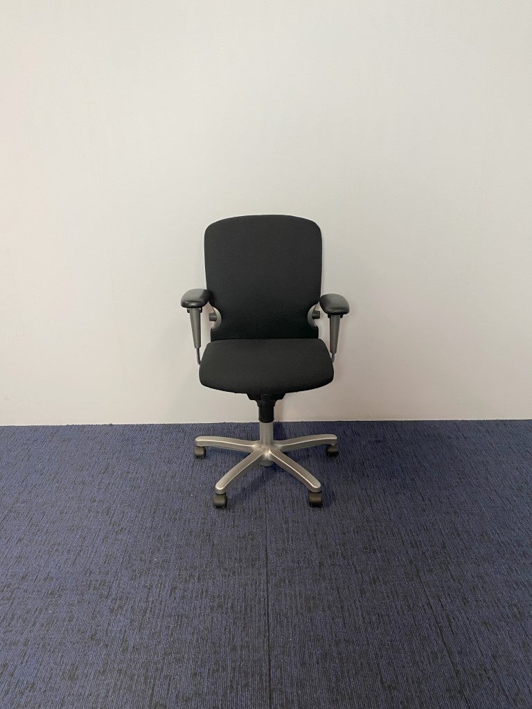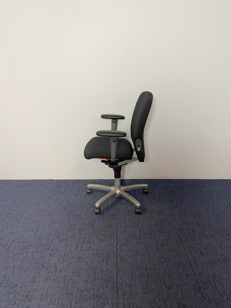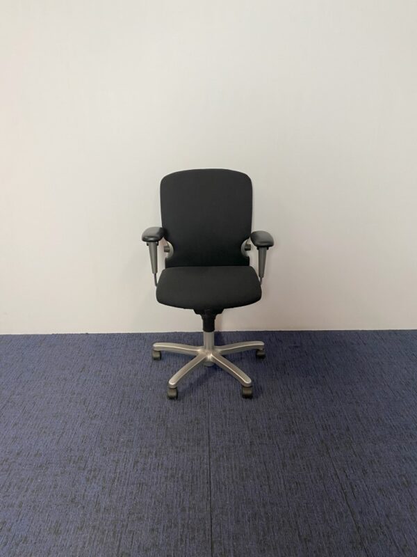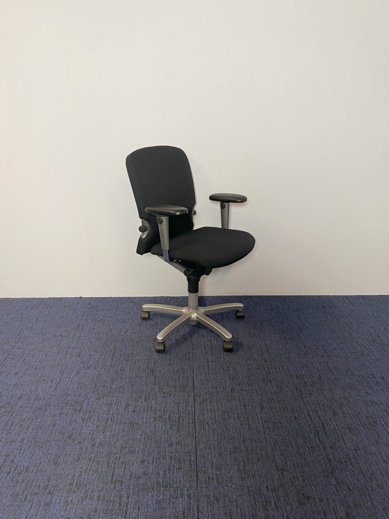 Bureaustoel Comforto 77, nieuw zwart gestoffeerd, aluminium voetkruis