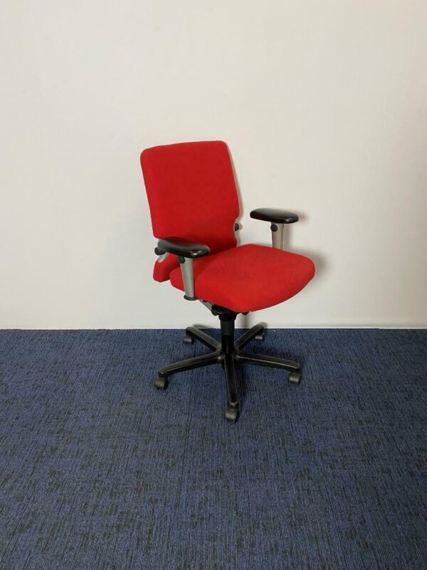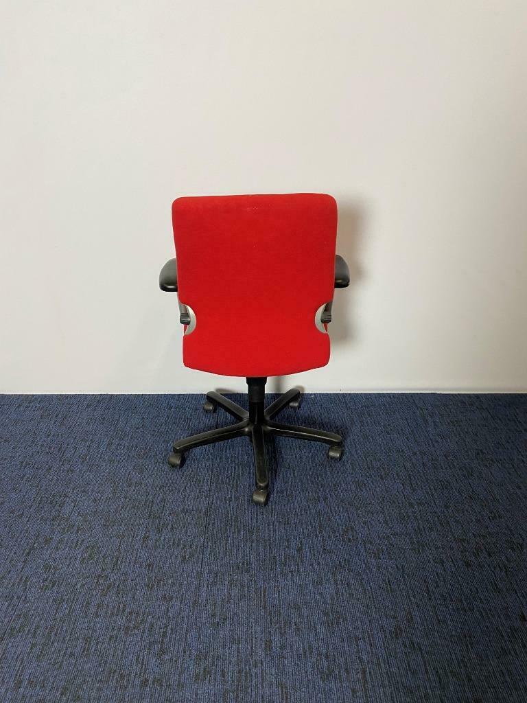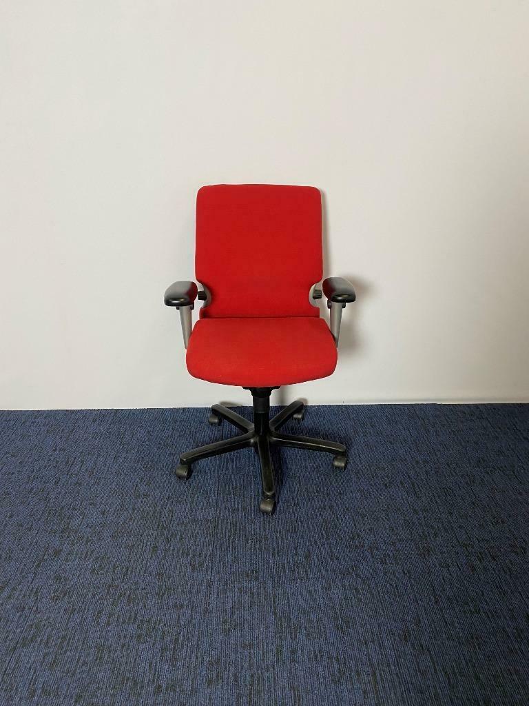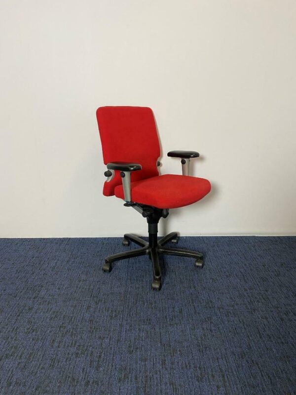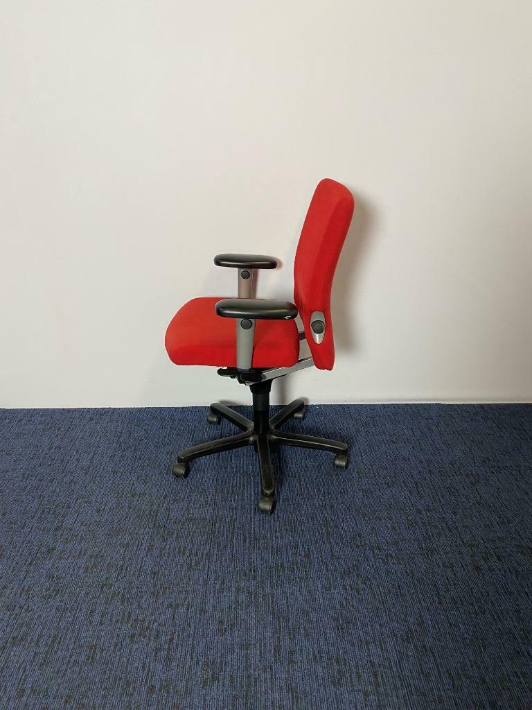 Bureaustoel Comforto 77, rode stoffering, zwart voetkruis (leren opdekjes)