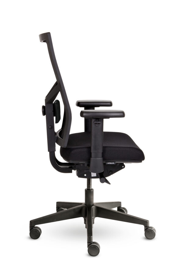 - armleggers voorzien van in diepte instelbare brede PU opdek met slider