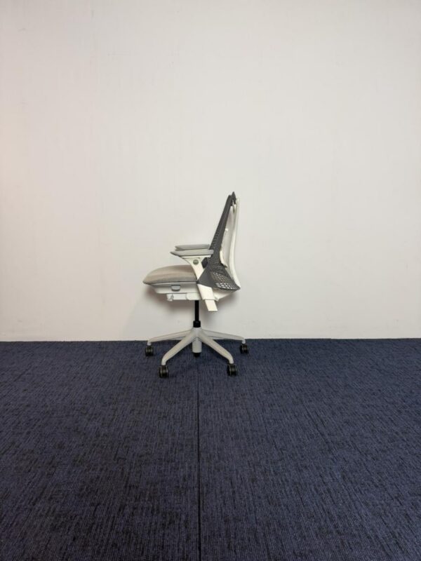 Bureaustoel Herman Miller Sayl, grijze zitting, donkergrijze rug, grijs voetkruis