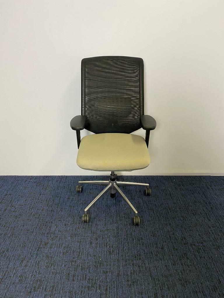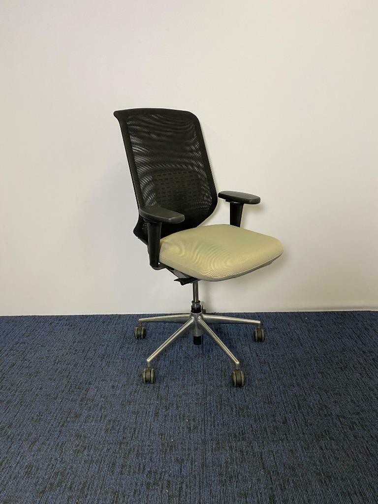Bureaustoel Vitra Meda Pro, zwart/beige, chroom voetkruis, design