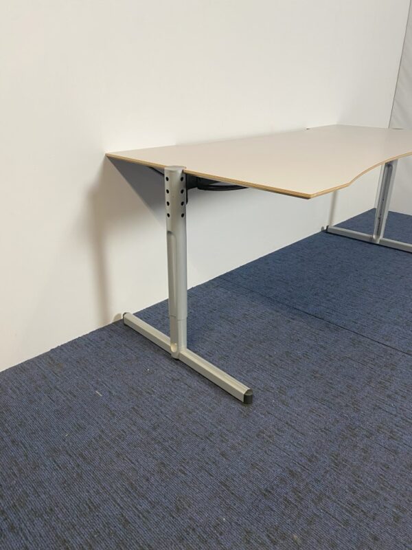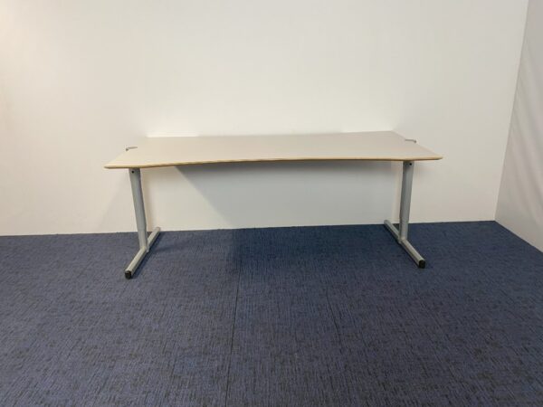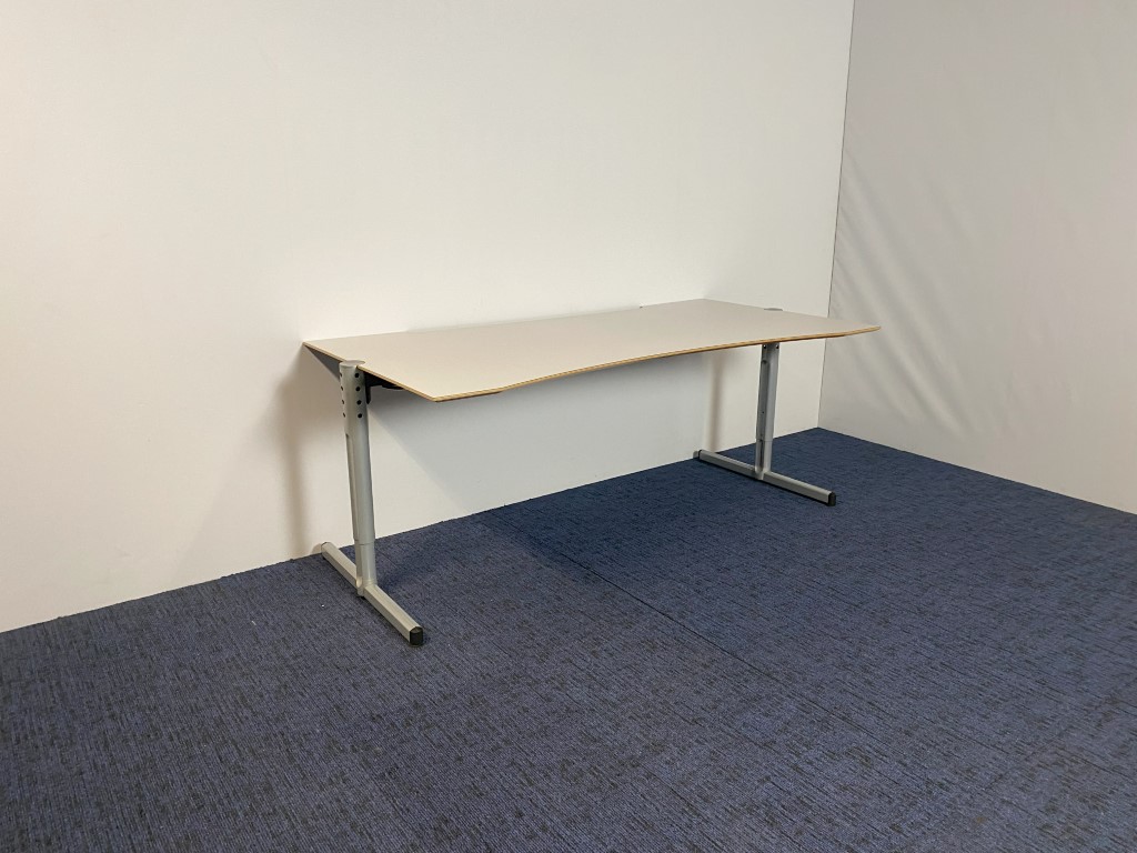 Cockpit bureau Gispen, muisgrijs blad, aluminium onderstel, 180 x 90/76 cm.