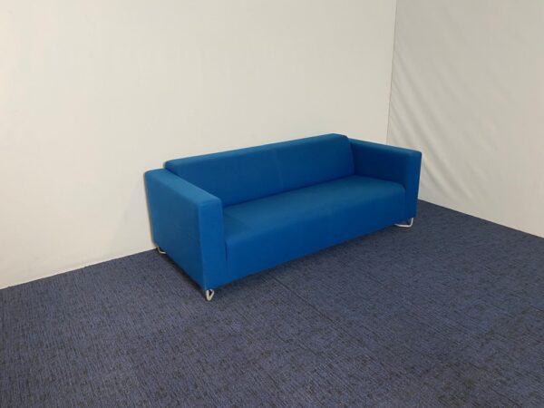 Design bankstel Noti, blauwe stof, H 70 x B 190 x D 86 cm.