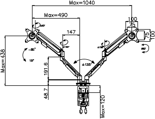 Dubbele monitorarm met bladklem, incl. USB-poorten