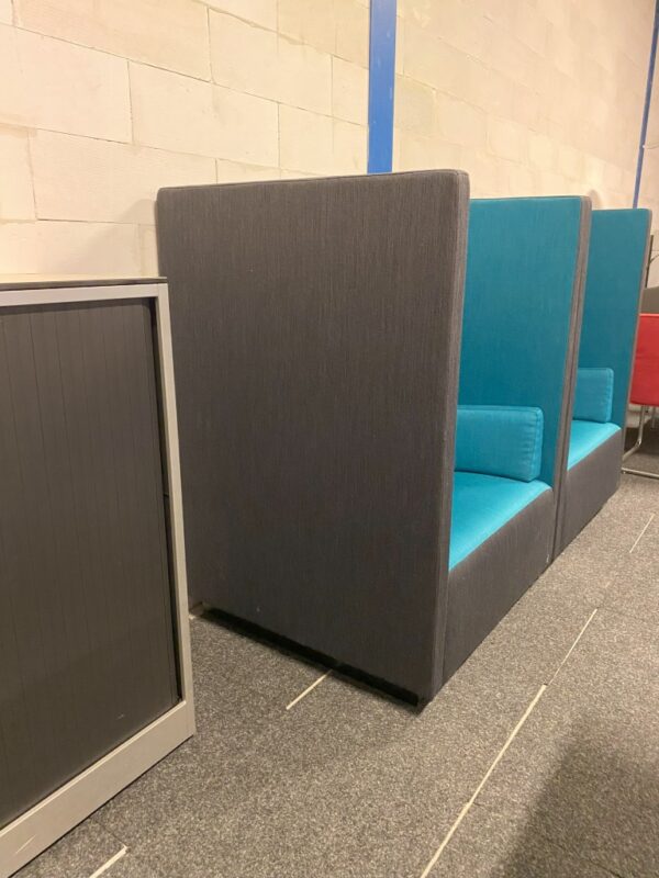 Fauteuil (akoestisch) Offecct Float High, antraciet/blauw, H 131 x B 92 x D 90 cm.