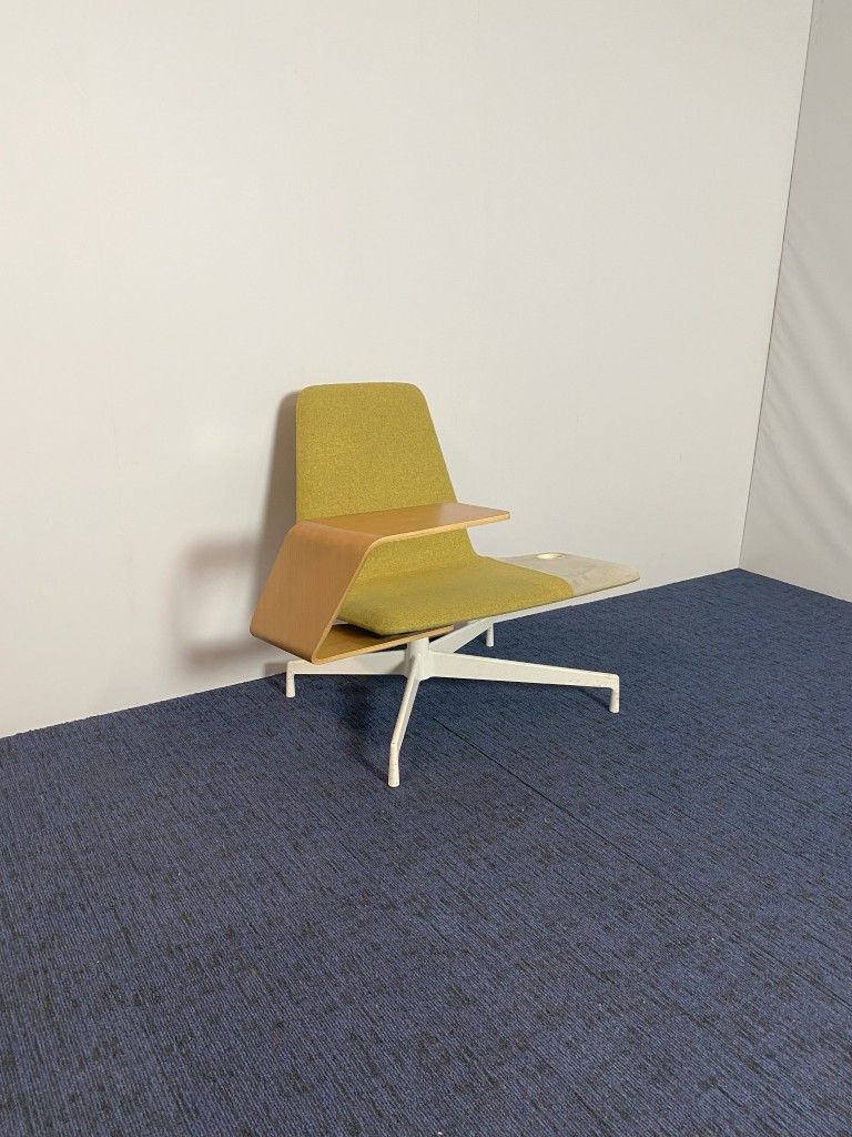 Fauteuil Haworth Harbor Work Lounge, mosterdgroen/lichtgrijs, wit onderstel