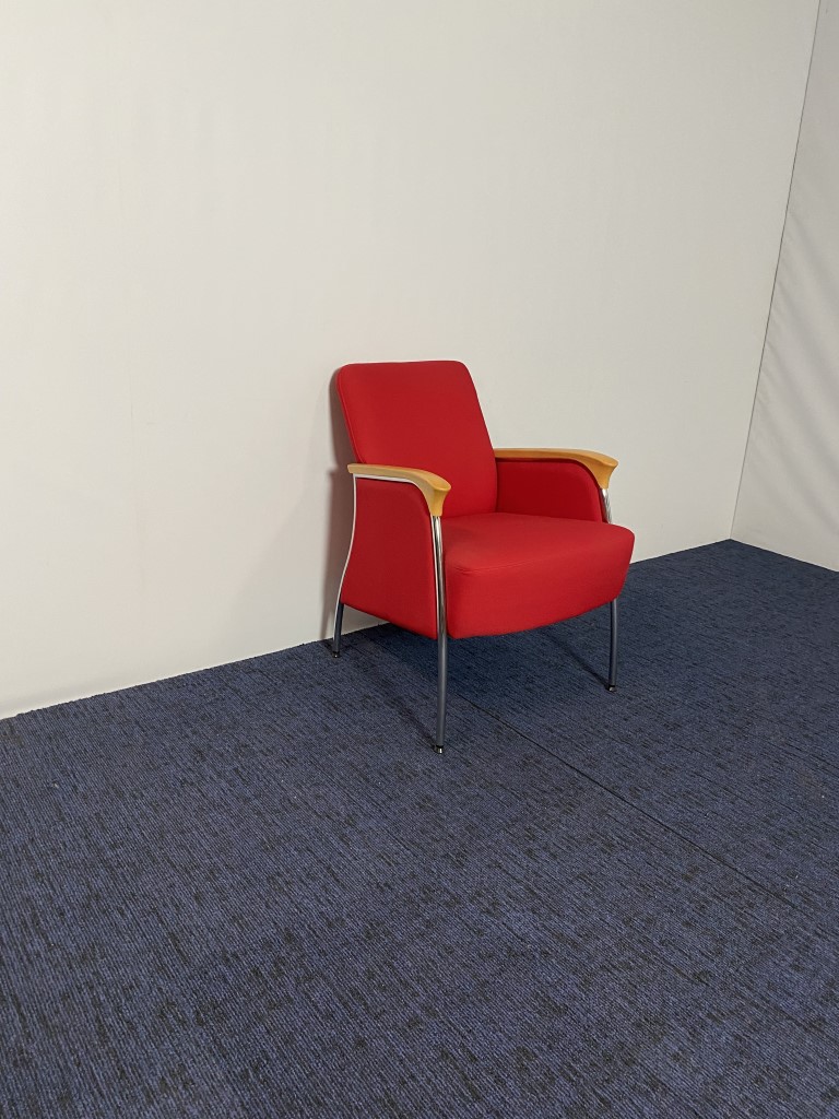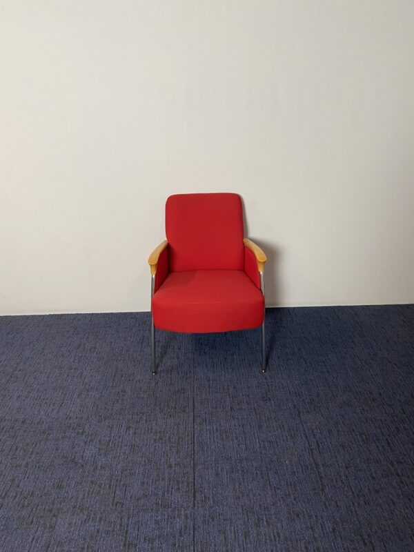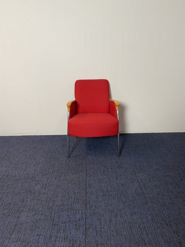 Fauteuil Vepa, rode stoffering, chroom 4-poot onderstel