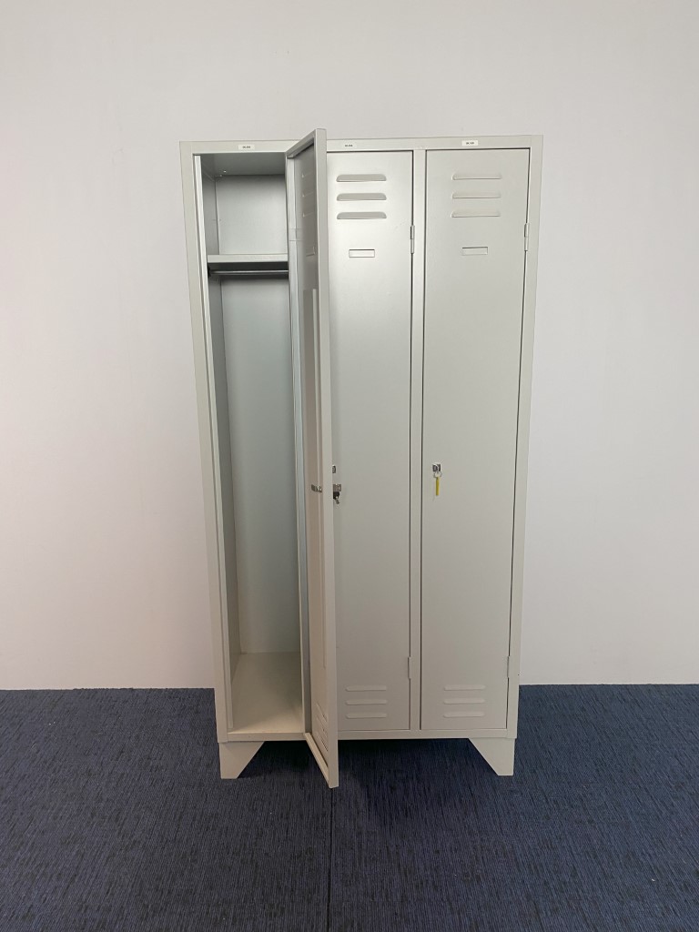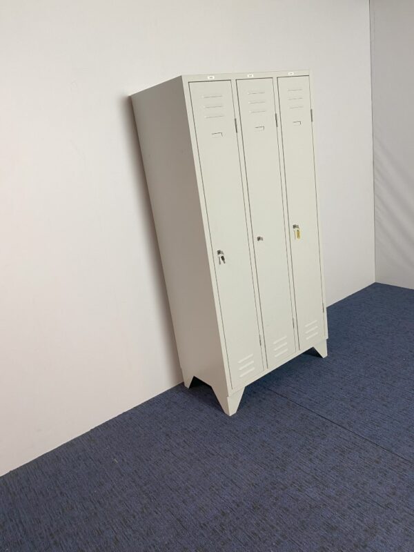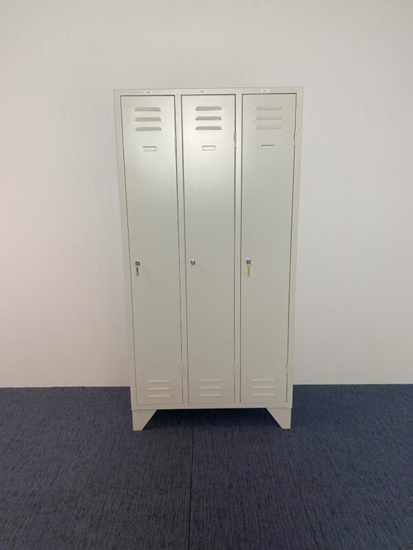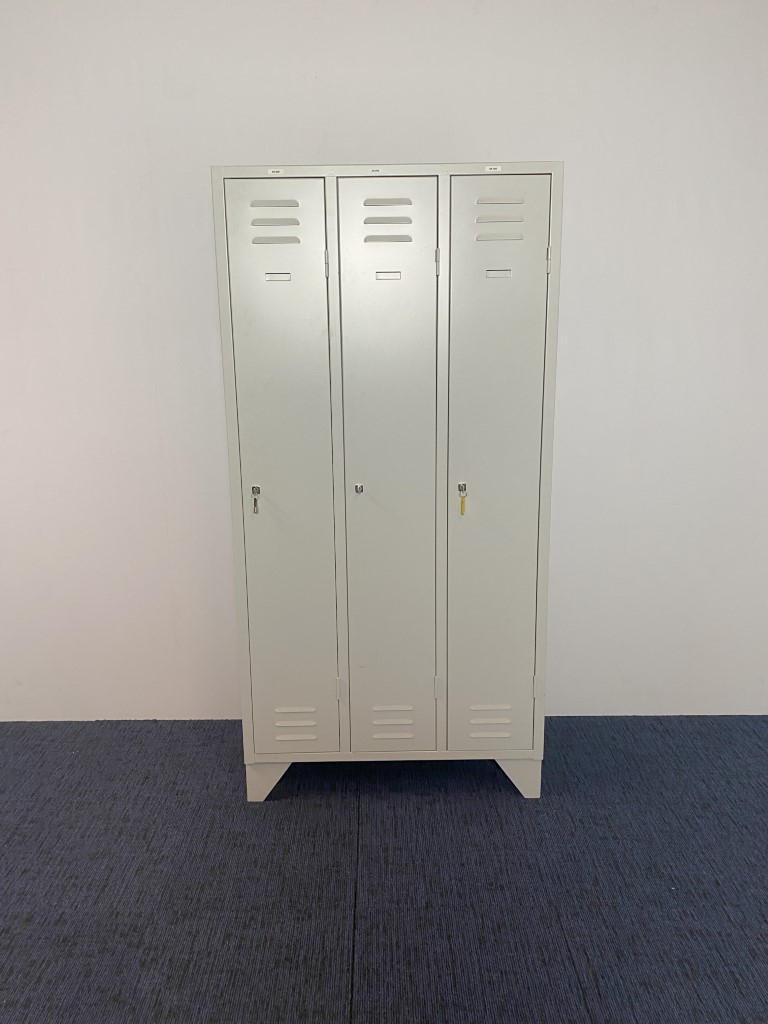 Garderobekast 3-deurs, lichtgrijs, H 184 x B 90 x D 50 cm.