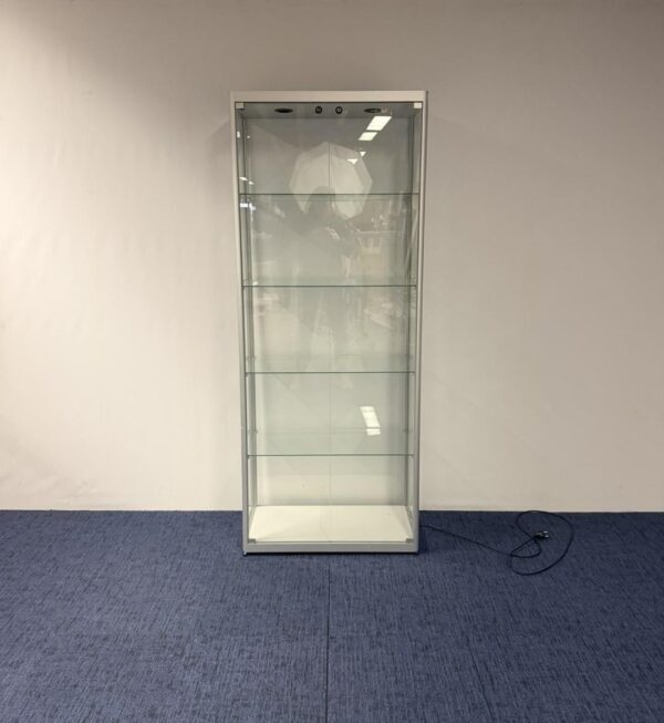 Glazen vitrinekast – H 200 x B 80 x D 40 cm.