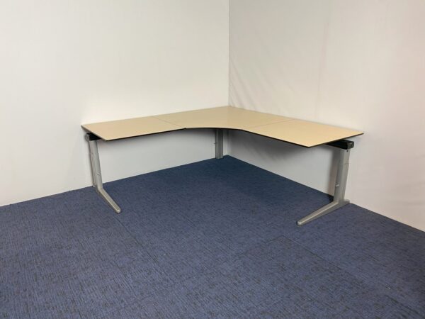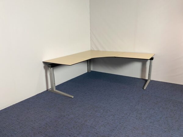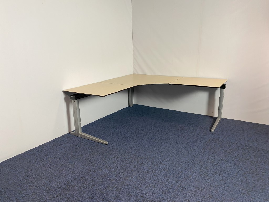 Hoekbureau Ahrend Essa, ahorn blad, aluminium onderstel, 200 x 200 cm.