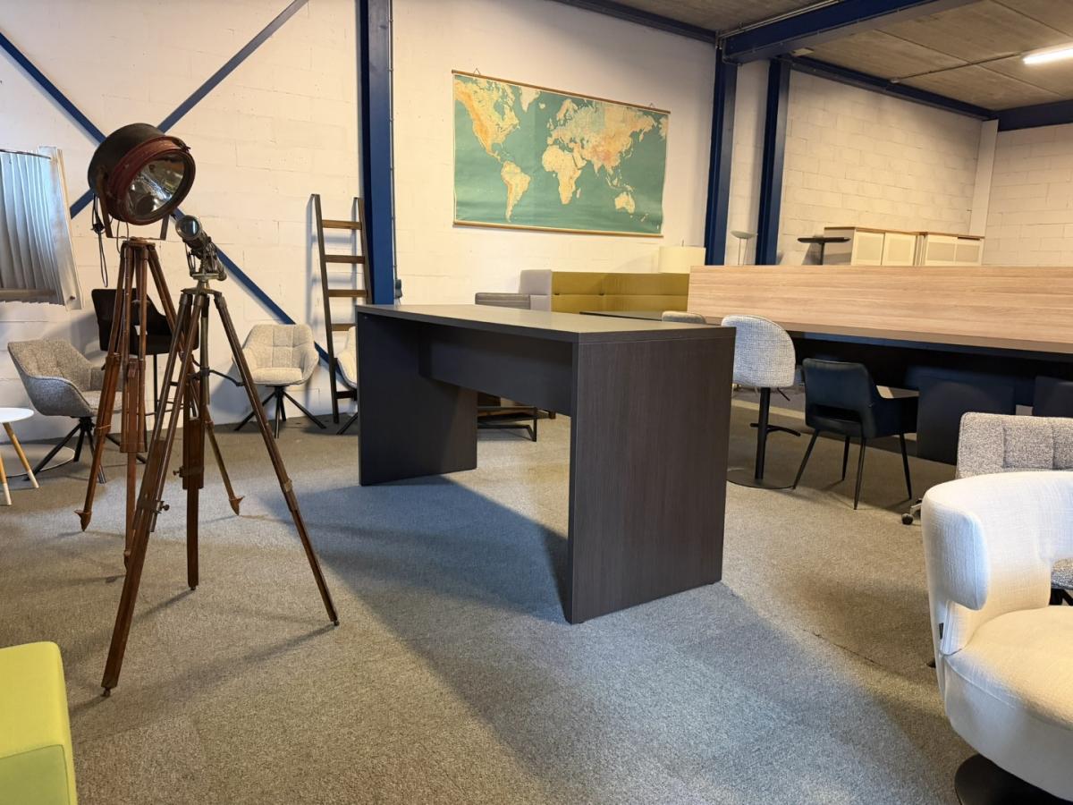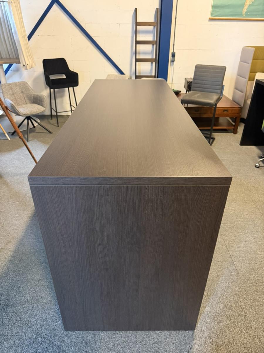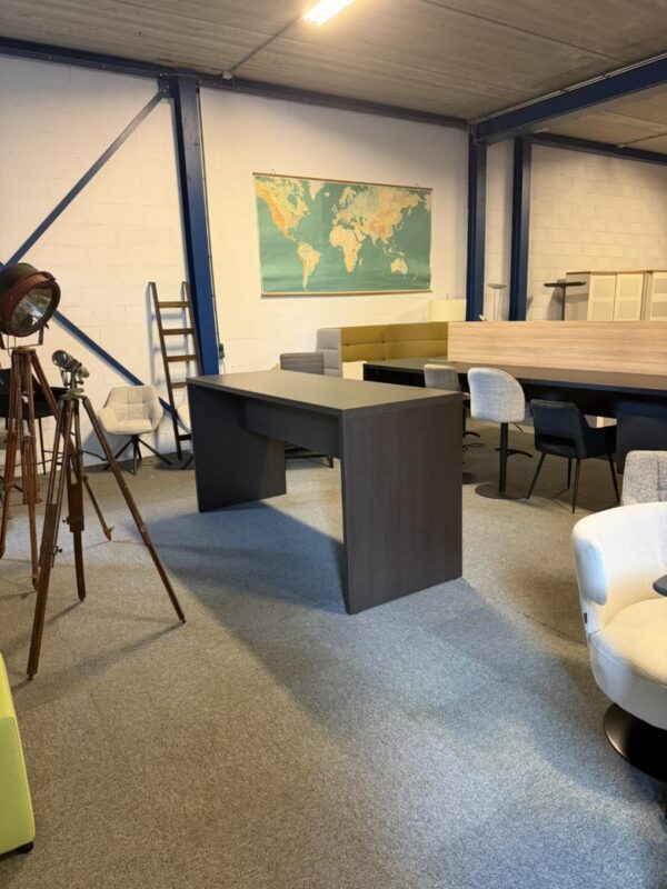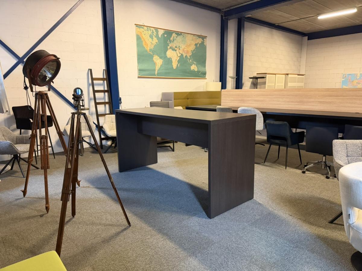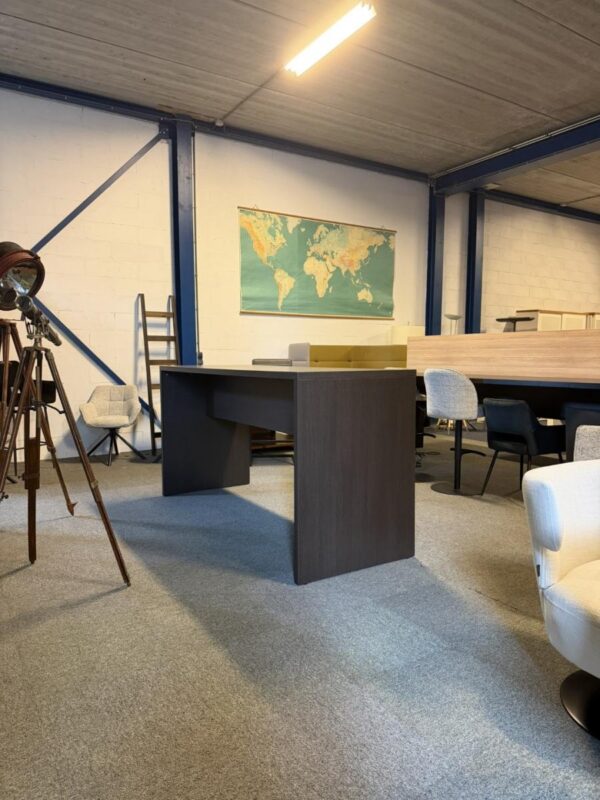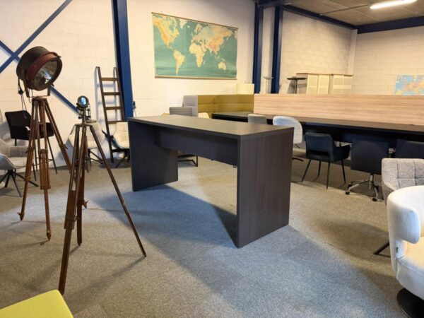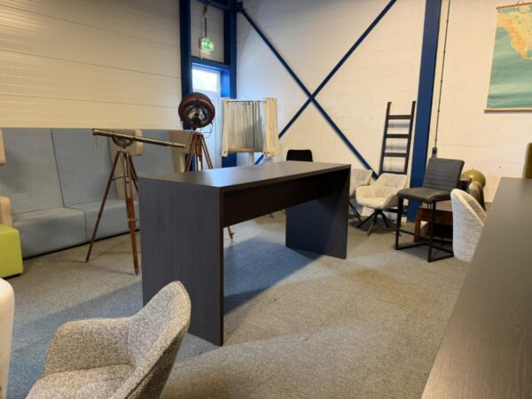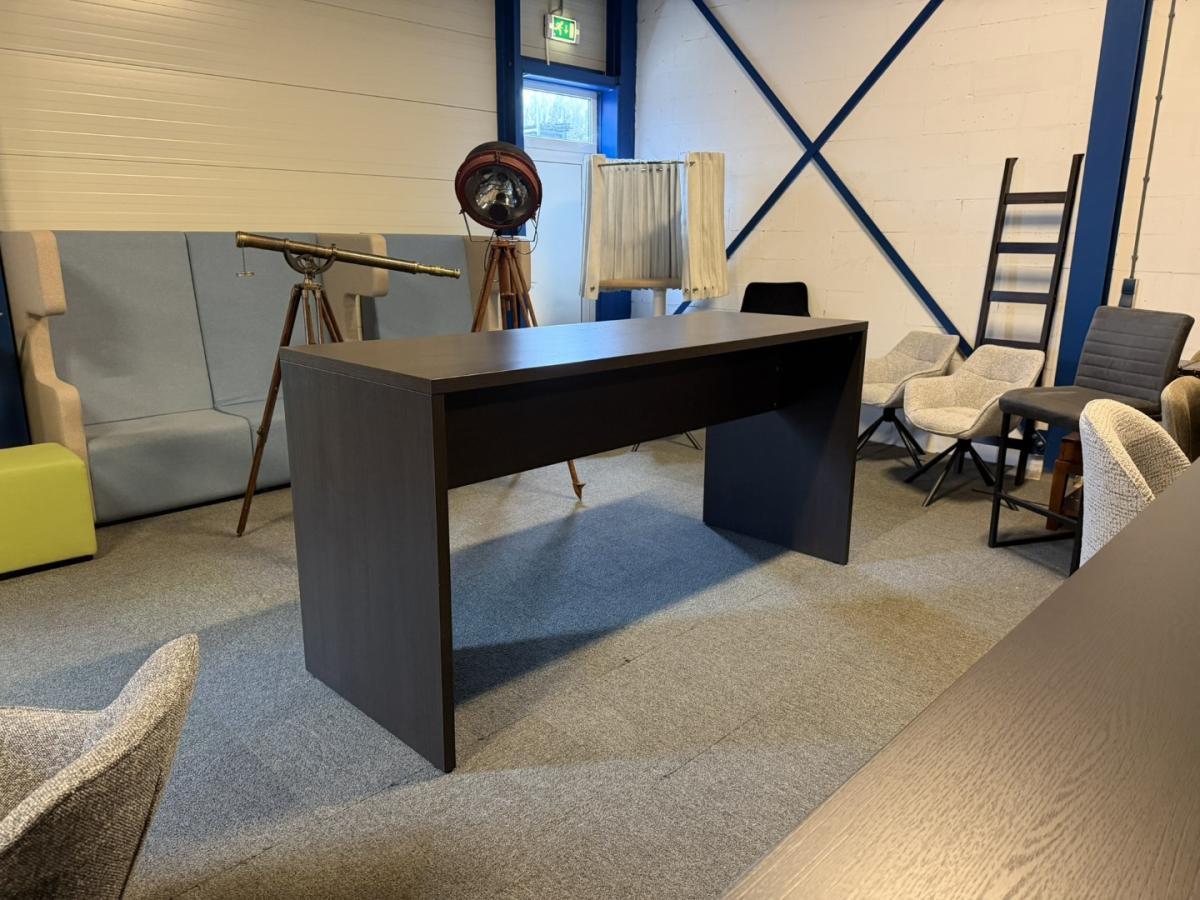 Hoge vergadertafel, donker eiken, 220 x 80 cm.