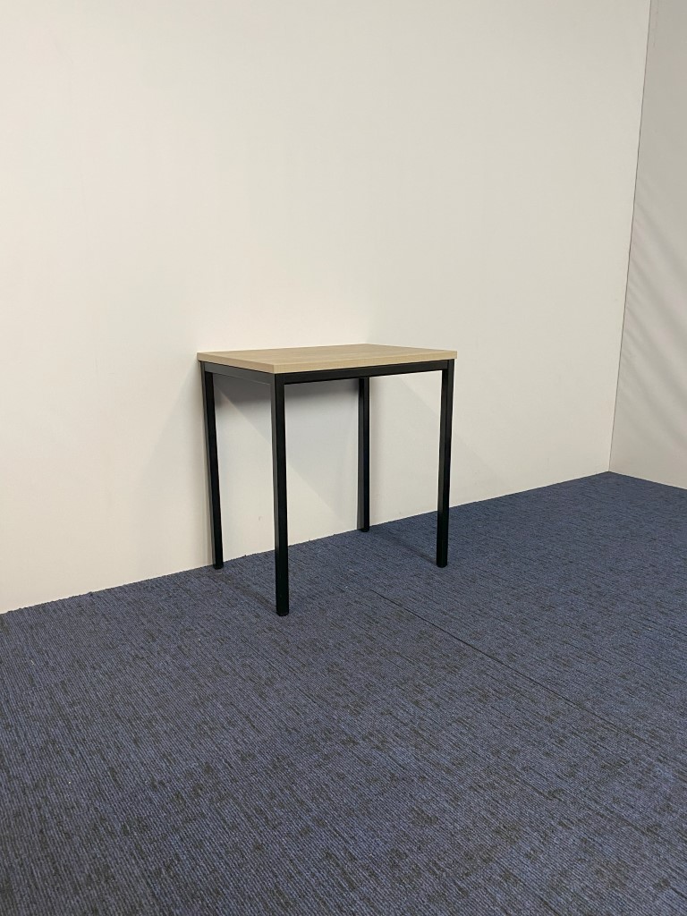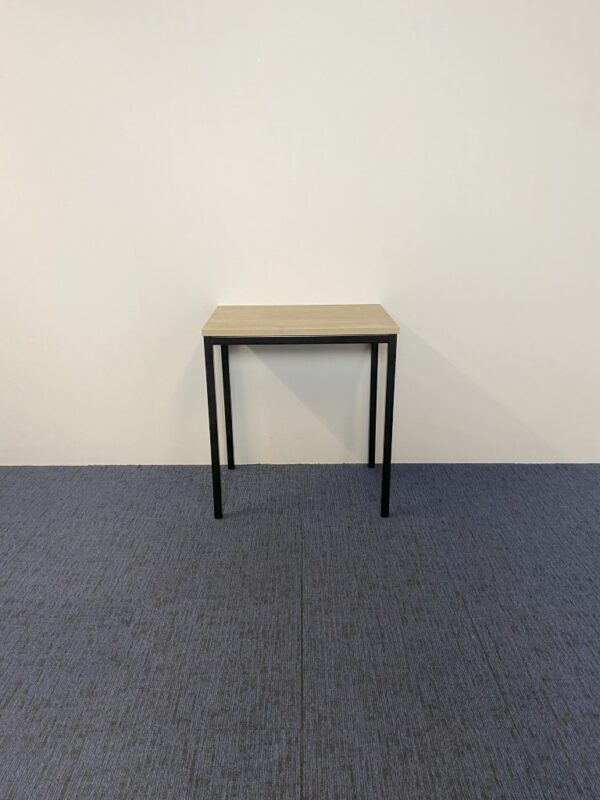 Kantinetafel, oak light blad, zwart onderstel, 70 x 50 cm.