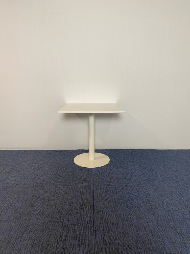 Kantinetafel, wit blad, wit onderstel, 80 x 80 cm.