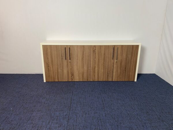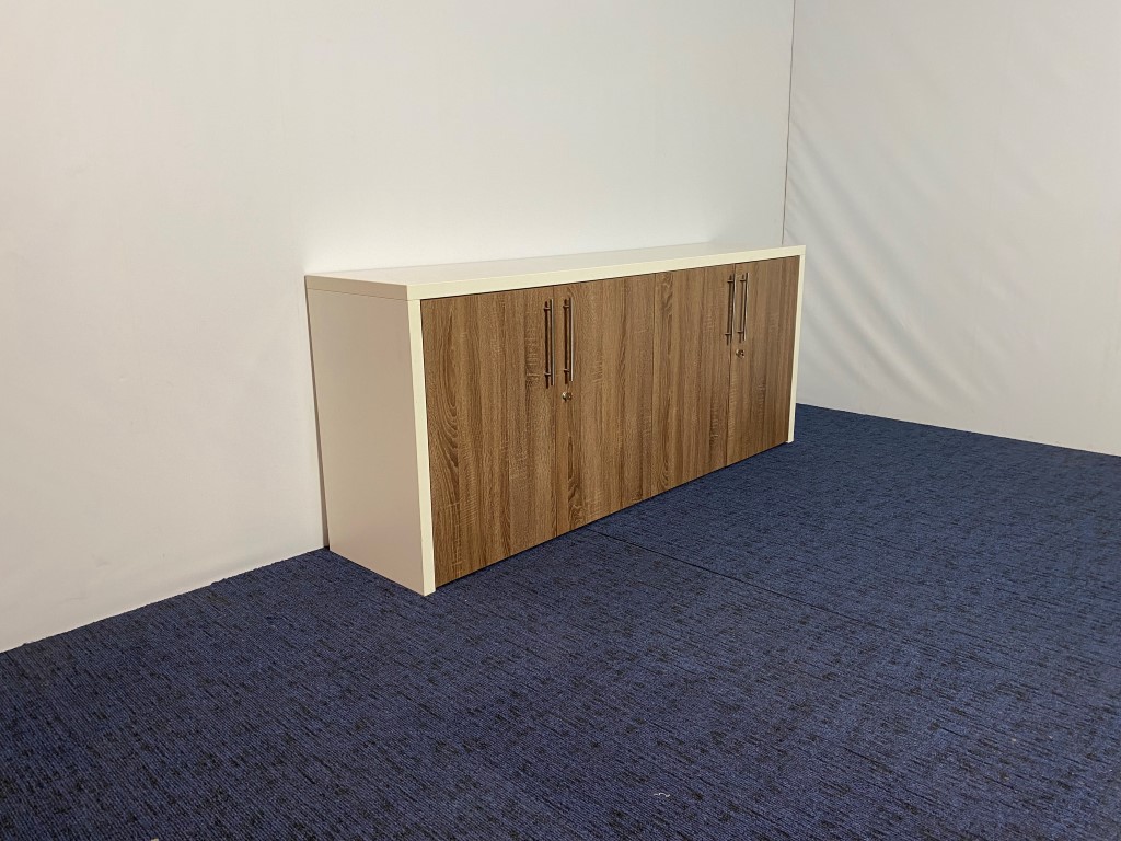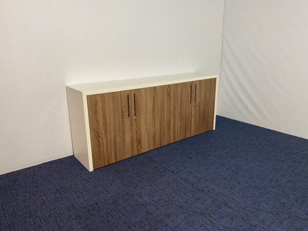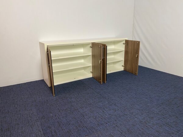 Klapdeurkast, bruin eiken/wit, H83 x B200 x D45 cm.