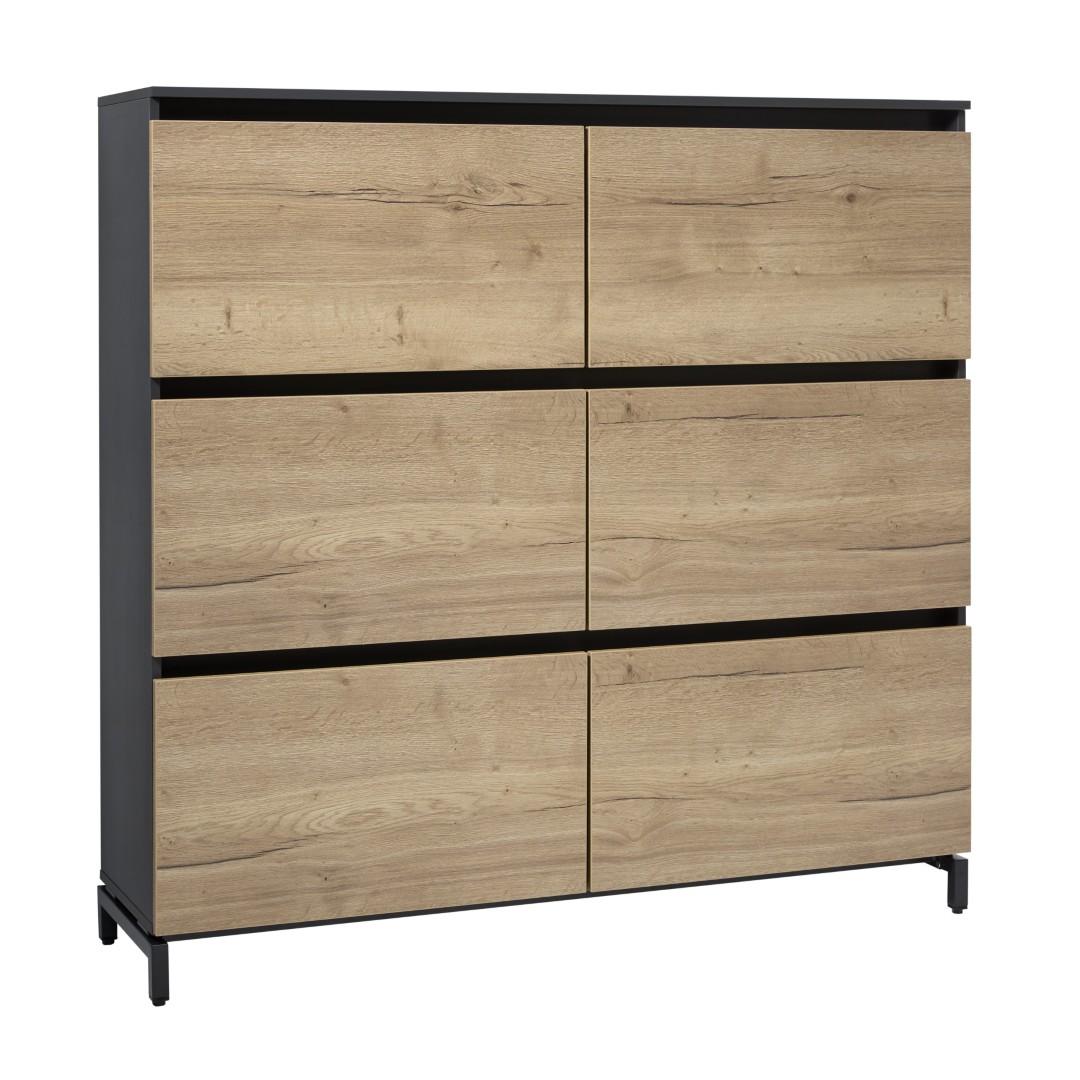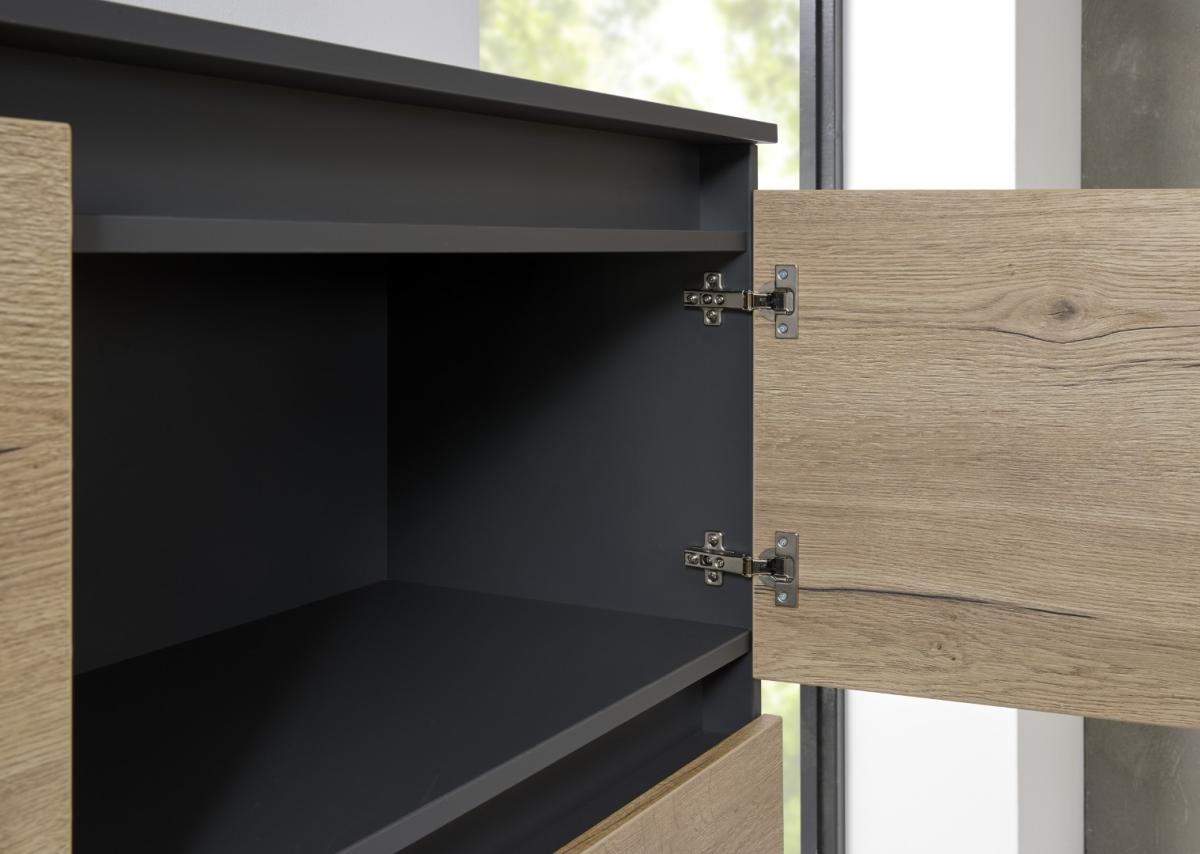 Klapdeurkast Cube, eiken naturel/antraciet, H 155 x B 160 x D 44 cm.