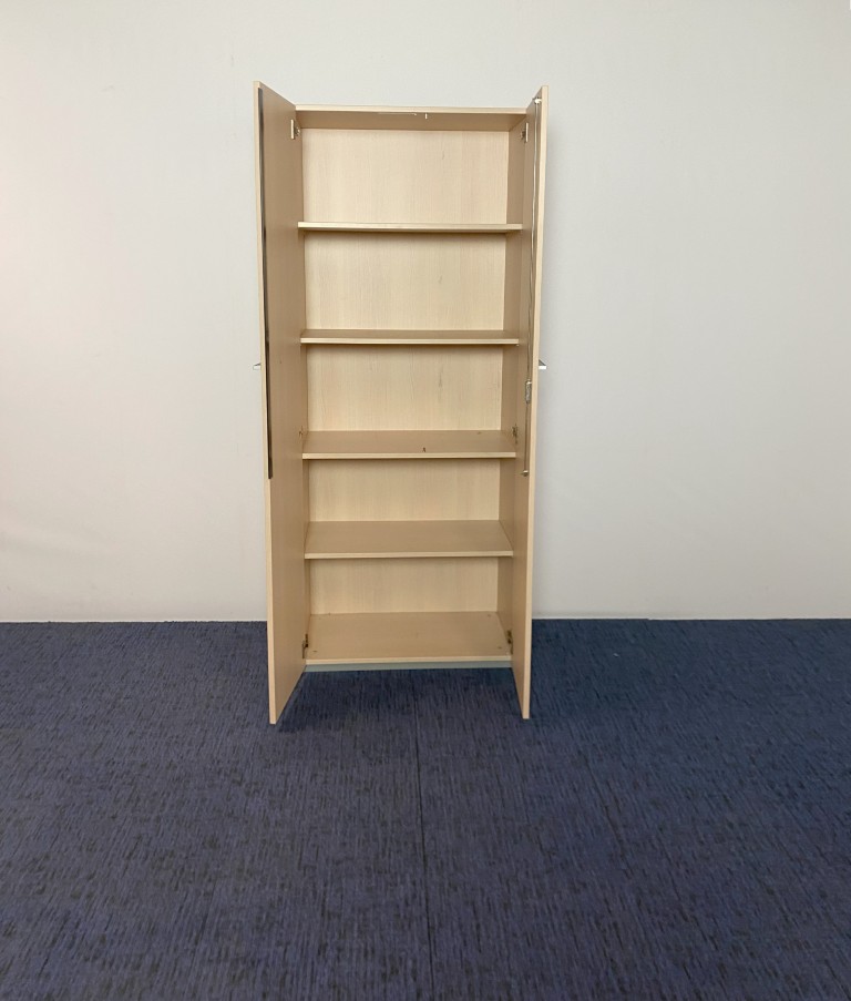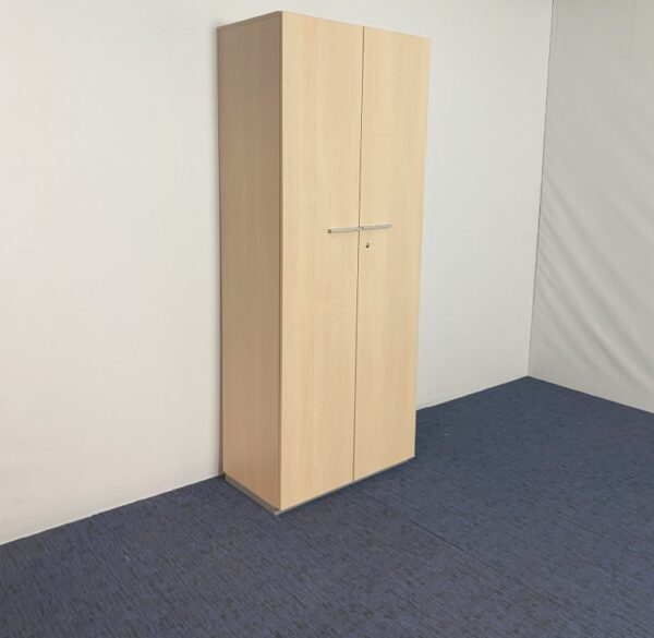 Klapdeurkast, licht eiken, H195 x B80 x D45,5 cm.