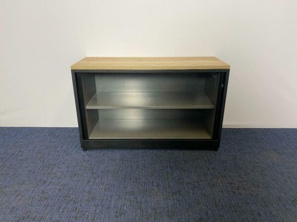 Roldeurkast Ahrend (nieuw zwart gespoten), H74 x B120 x D45 cm.
