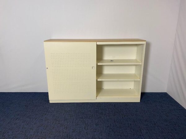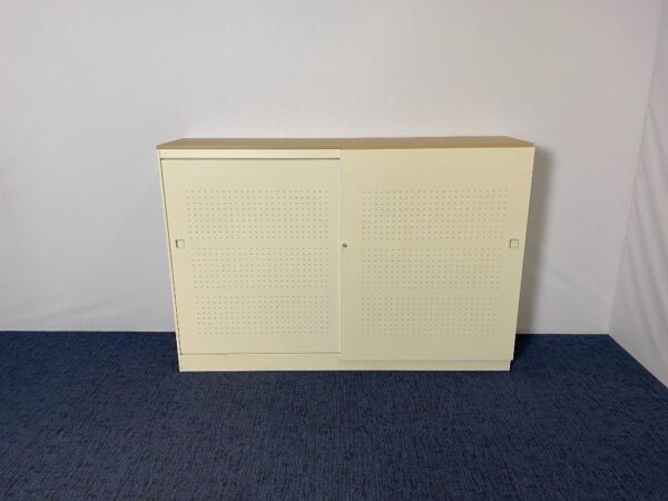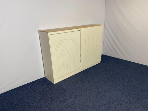 Schuifdeurkast Unifor (akoestisch), wit/crème, H 122 x B 180 x D 43 cm.