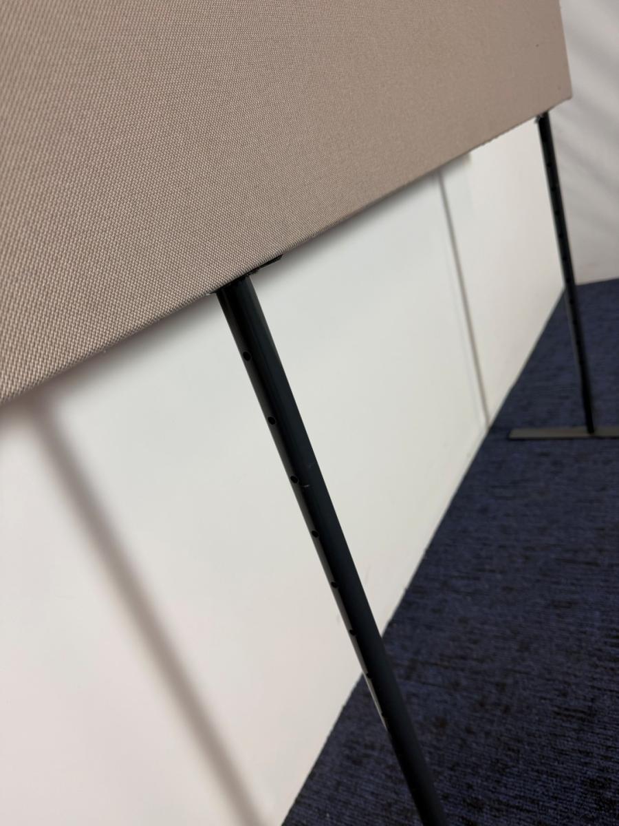 Staande akoestische scheidingswand, 180 cm. breed, grijze stof, antraciet ondervoet
