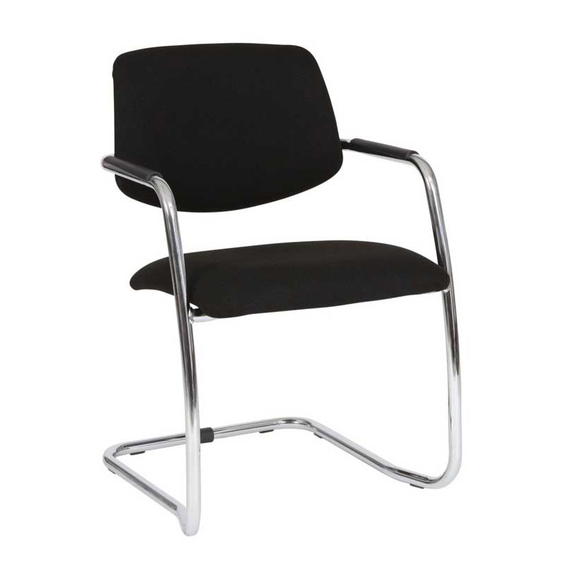 Vergaderstoel Basic, zwarte stof, chrome slede, nieuw