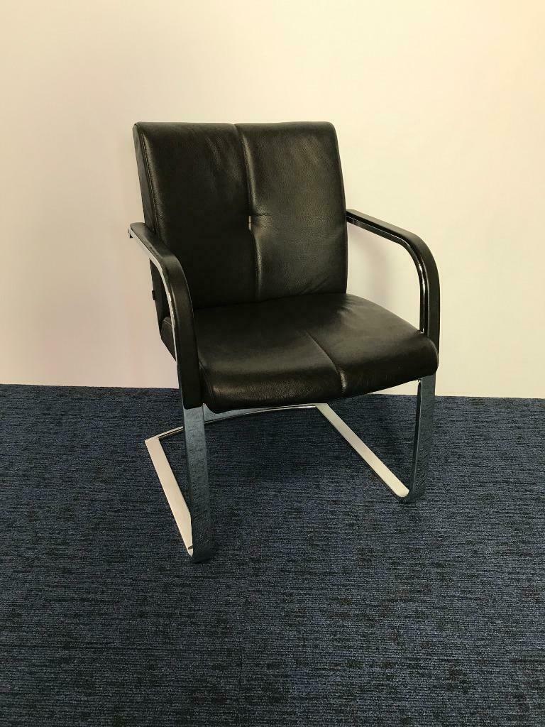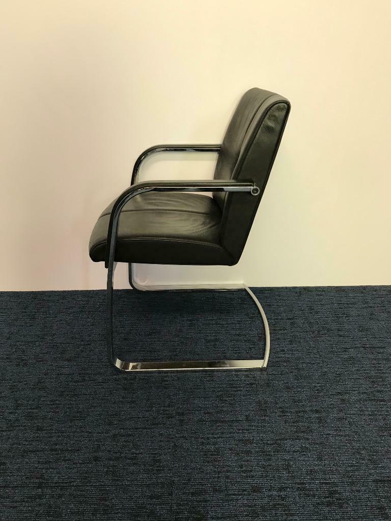 Vergaderstoel Klober, zwart leer, chrome slede