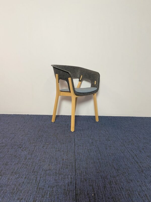 Vergaderstoel Kusch & Co 3000 Njord, donkergrijs met lichtblauwe zitting, houten 4-poot onderstel