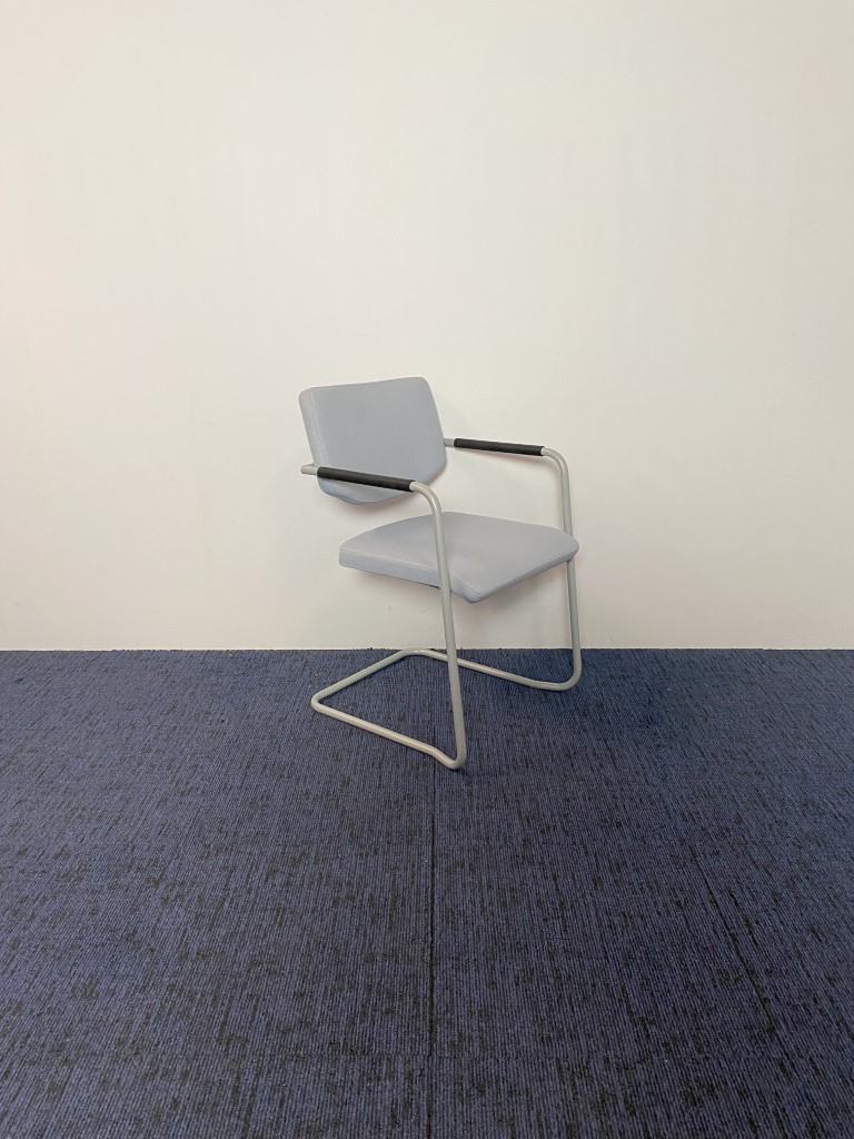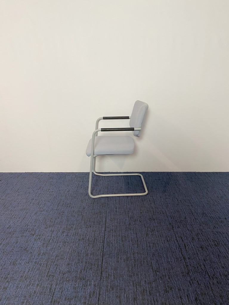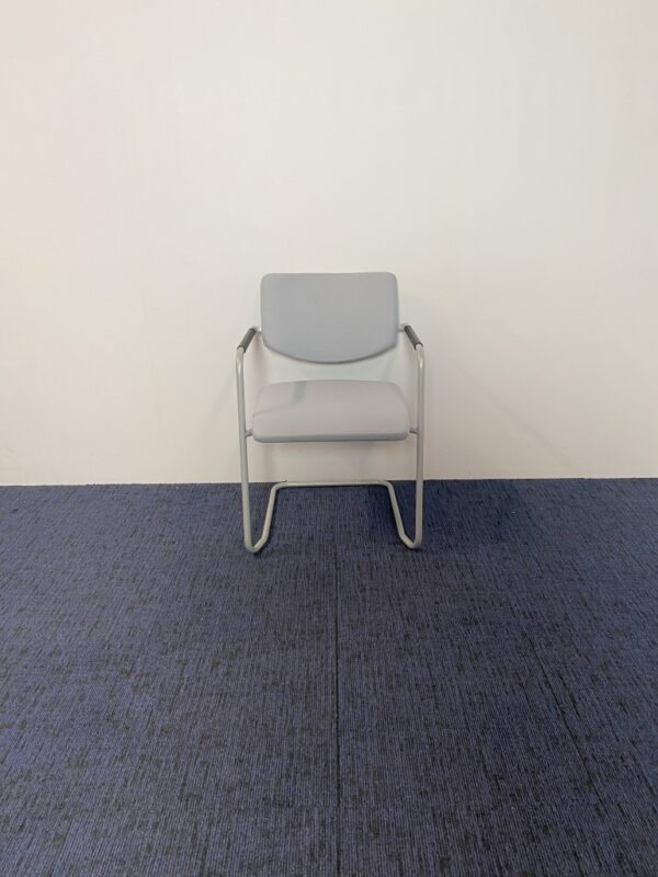 Vergaderstoel Lande, lichtgrijze stof, aluminium slede