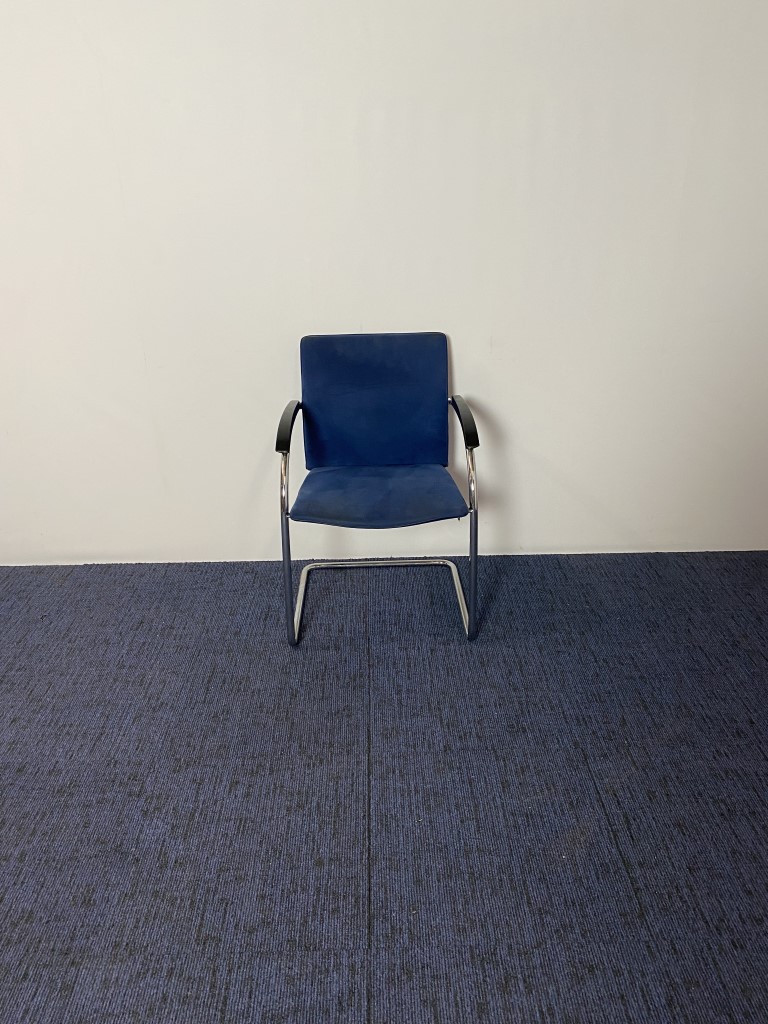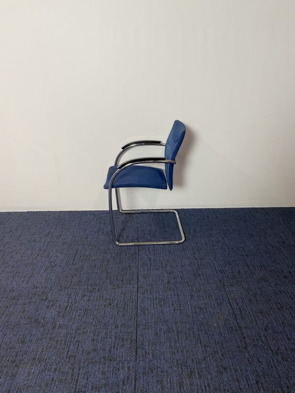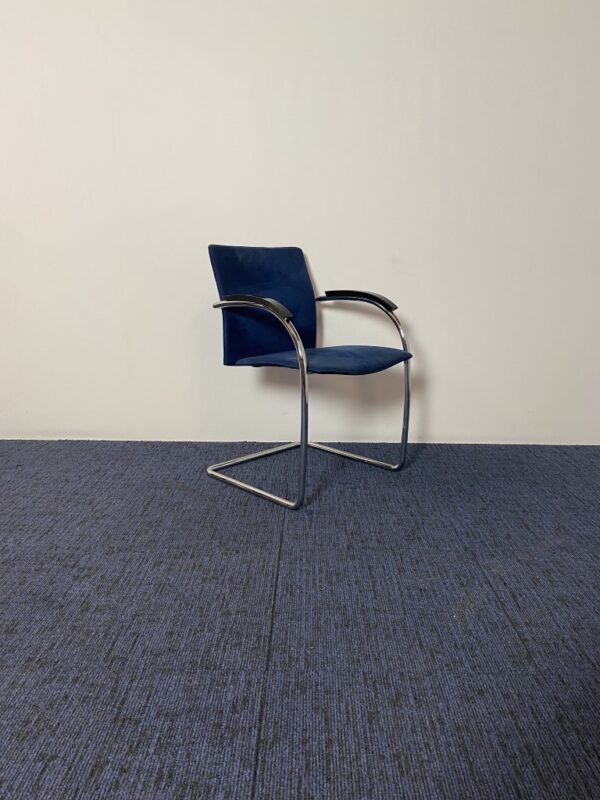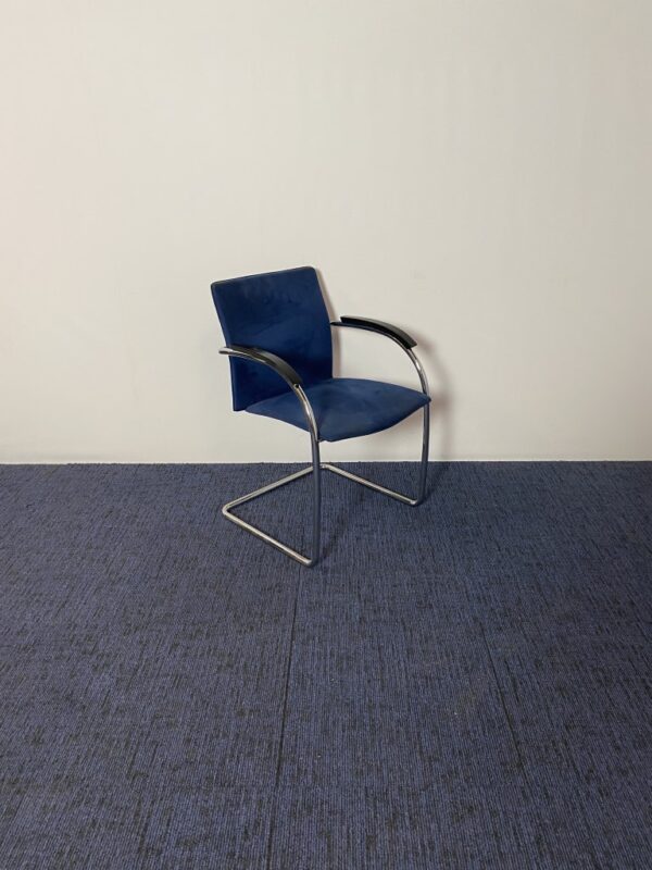 Vergaderstoel Thonet, blauw suède, chrome slede