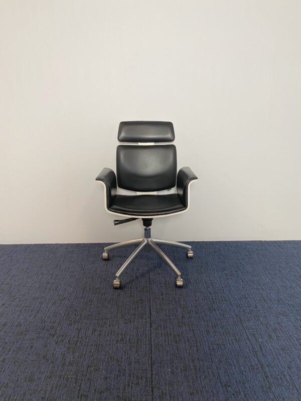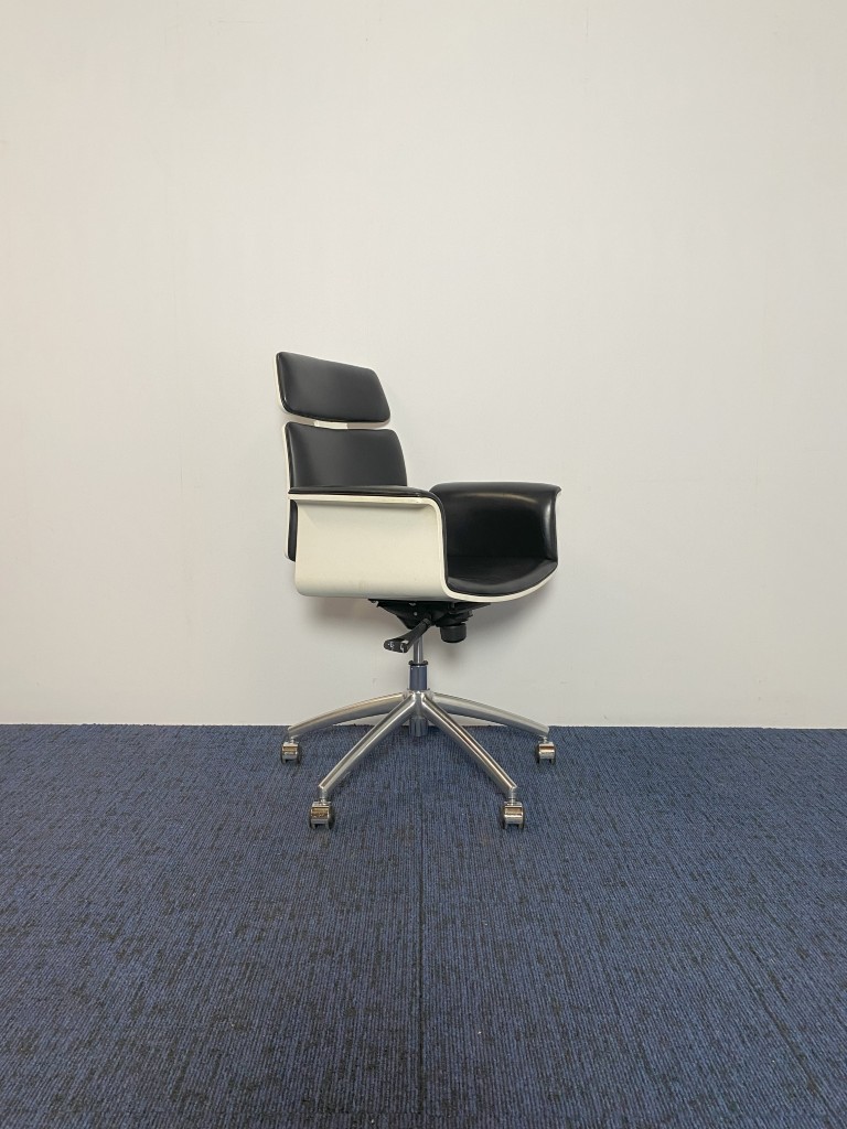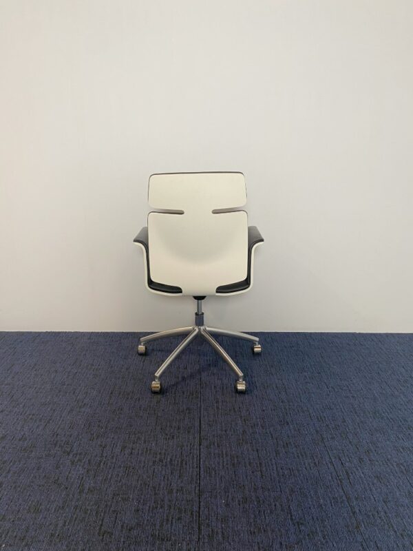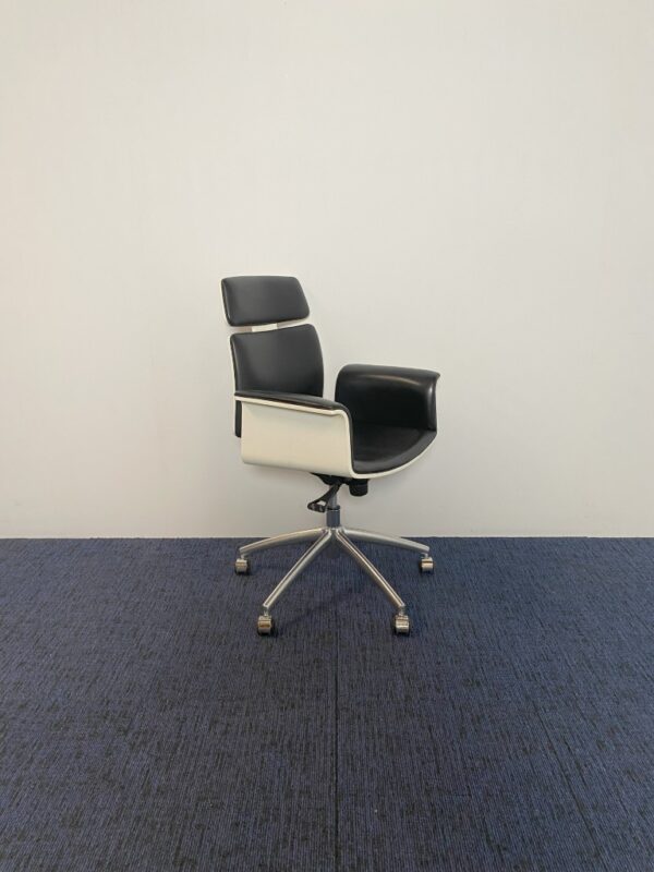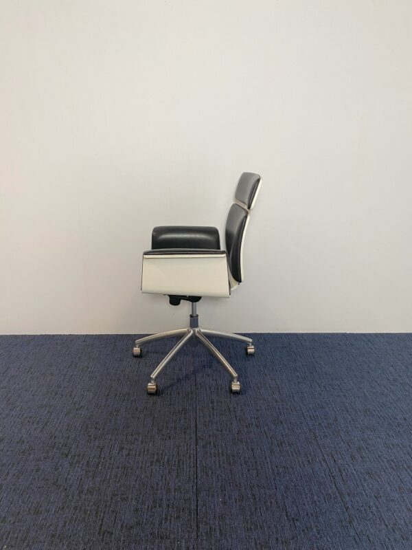 Vergaderstoel Vepa Fado-KKH – zwart leder, witte buitenkant, chroom voetkruis