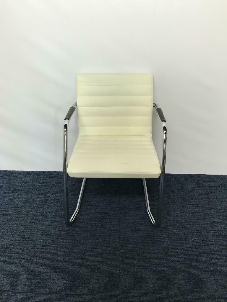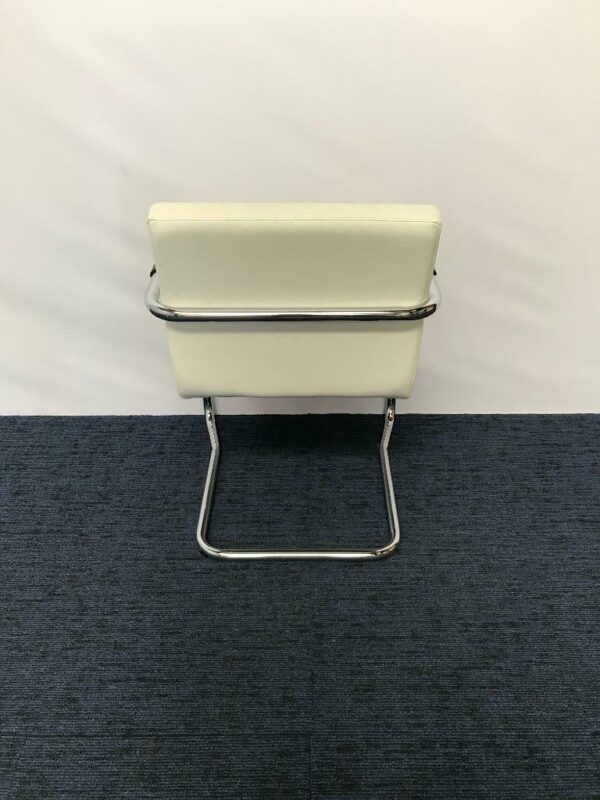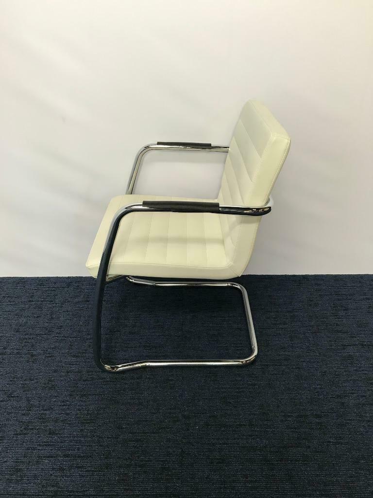 Vergaderstoel, wit kunstleder, chrome slede