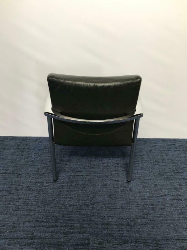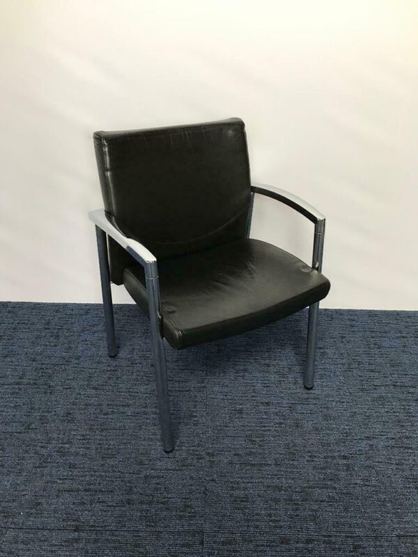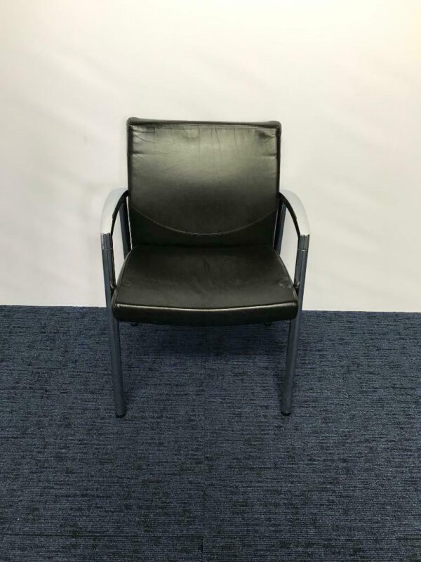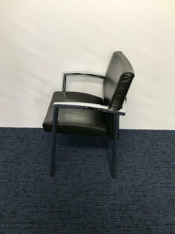 Vergaderstoel, zwart leer, chrome poten, chrome opdekjes