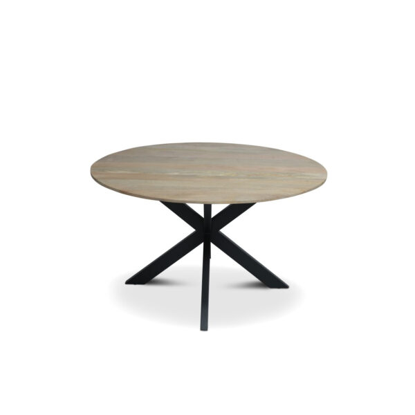 Vergadertafel Mango ‘rond’, kleur blad naar keuze, zwarte spinpoot, afmetingen naar keuze, nieuw