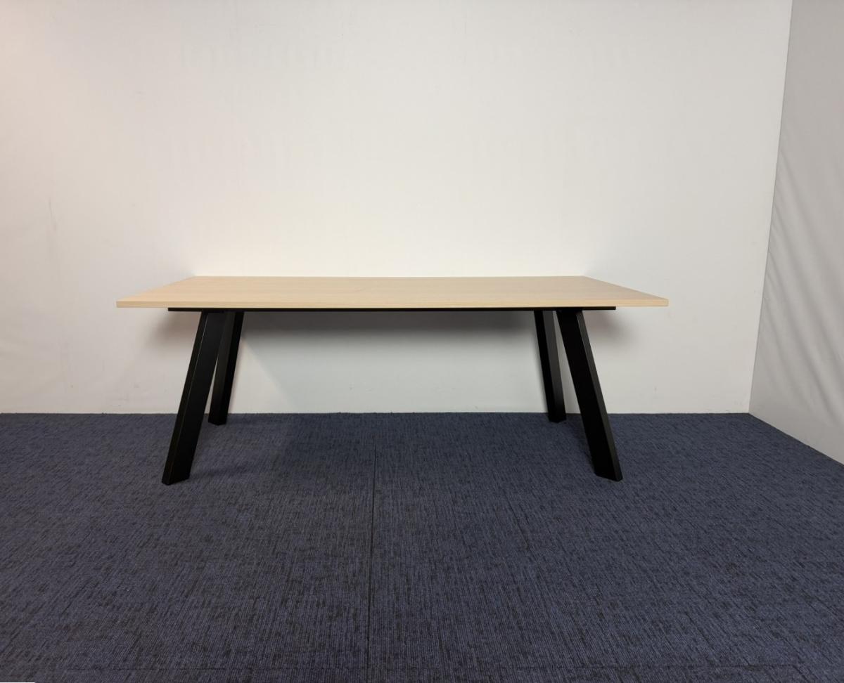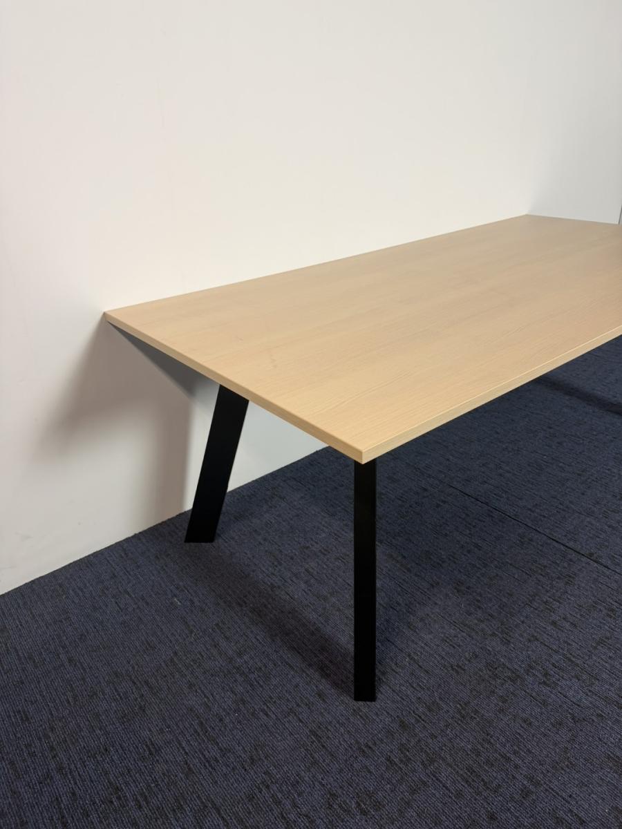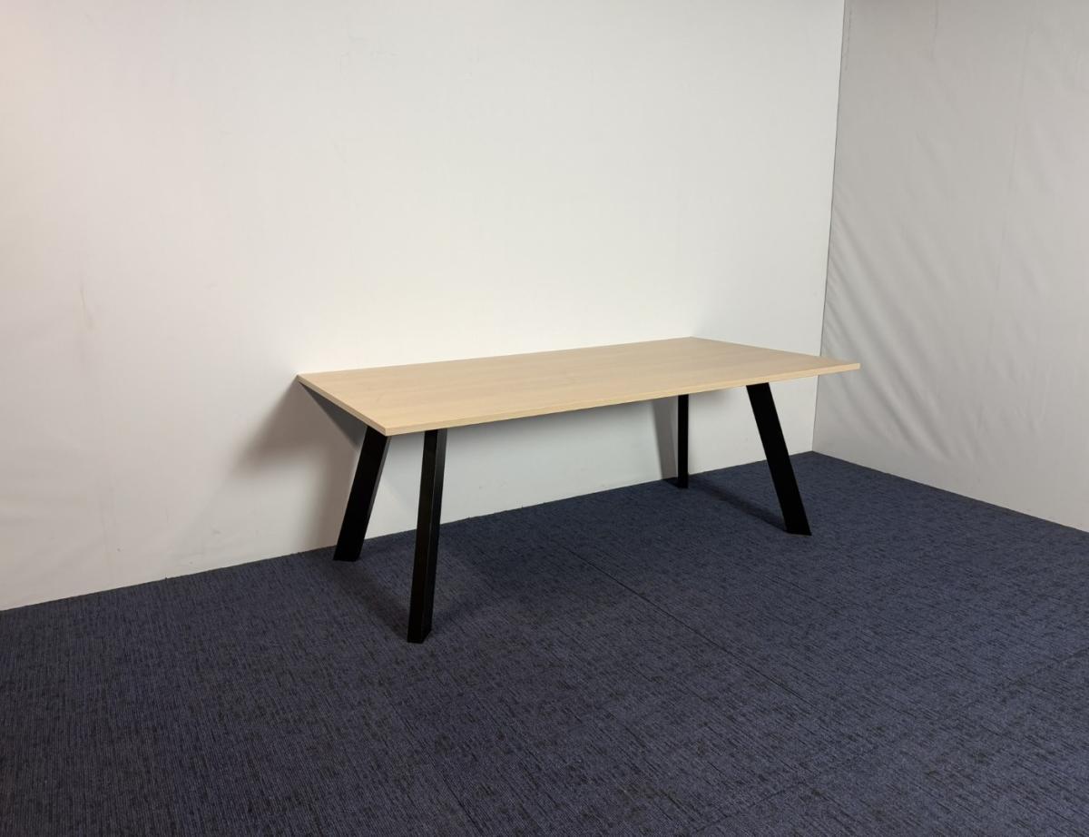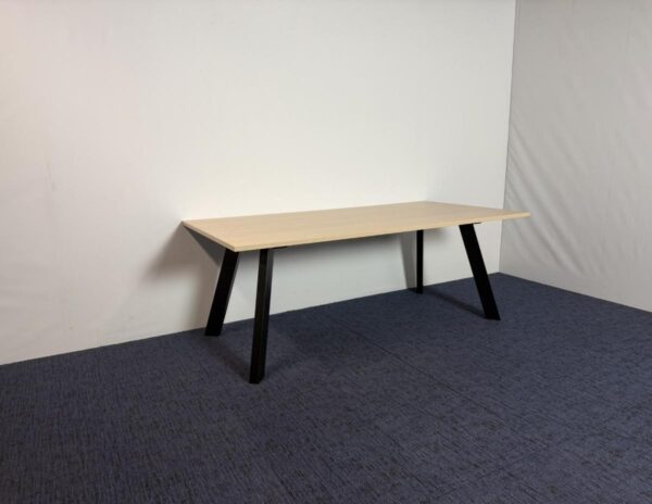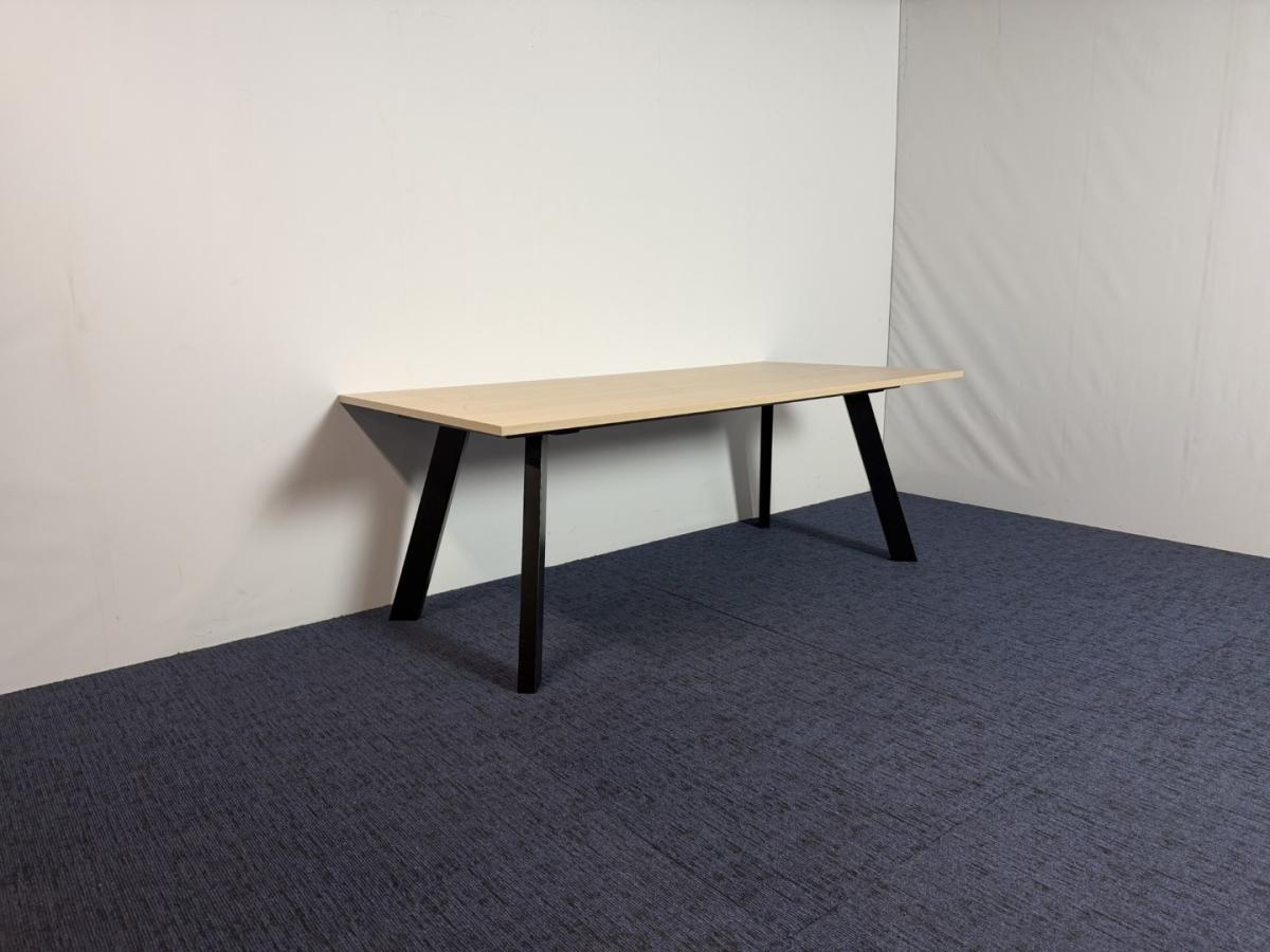 Vergadertafel Vepa, licht eiken blad, zwart onderstel, 200 x 100 cm.