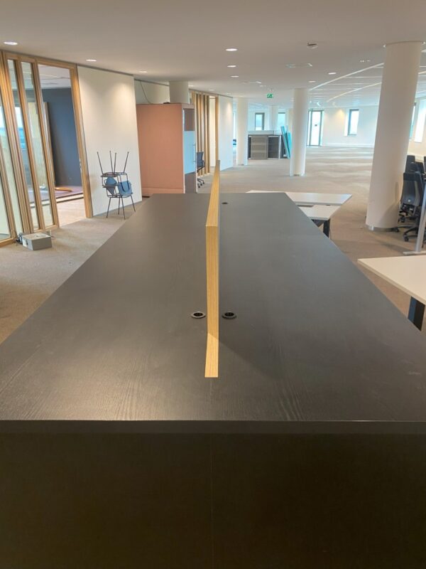 Kleur blad: donker eiken met licht eiken strook in het midden van de tafel.