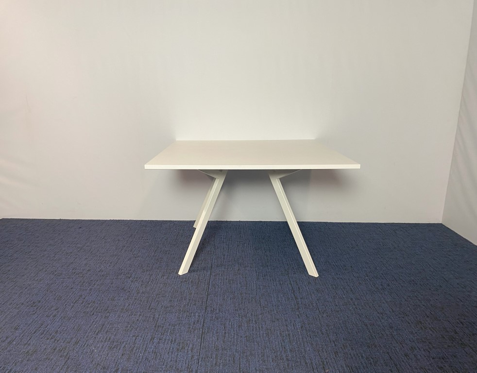 Vergadertafel Voortman, wit blad, wit frame, 120 x 120 cm.
