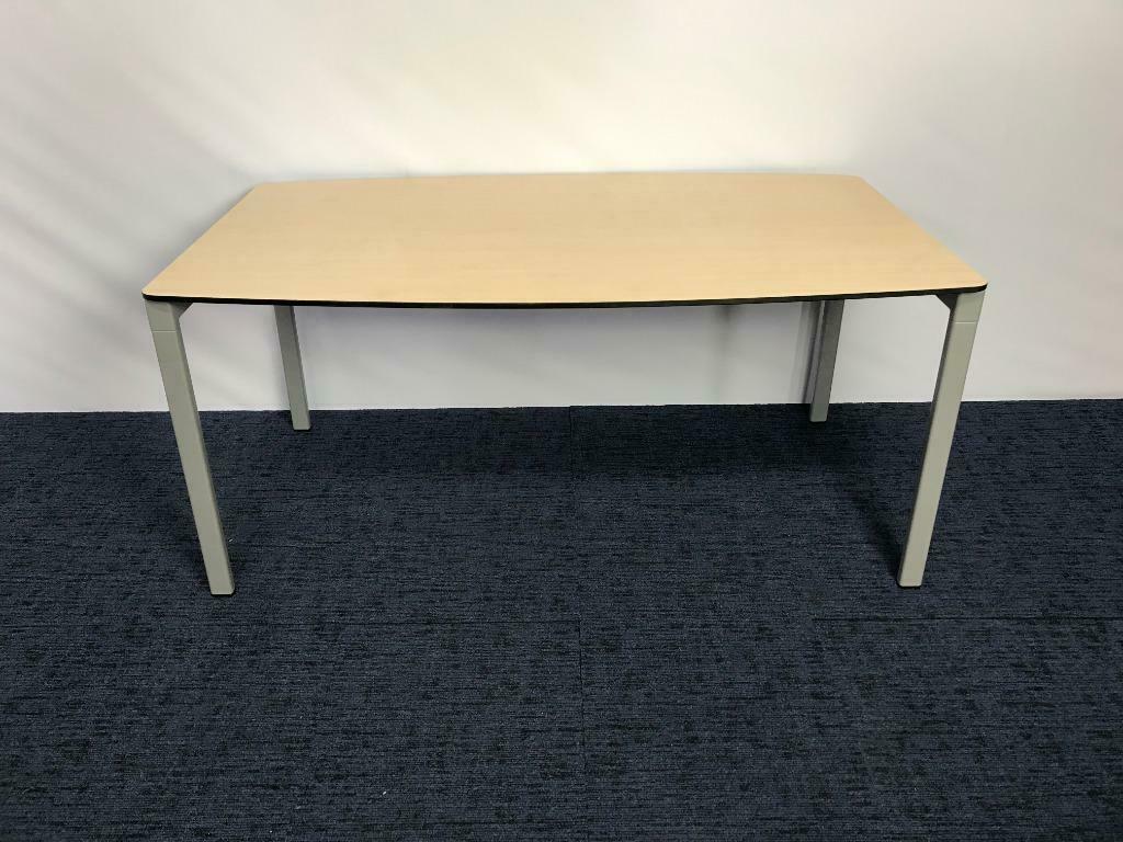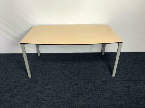 Vergadertafel Wiesner Hager, ahorn blad, aluminium onderstel, 160 x 85/95 cm.
