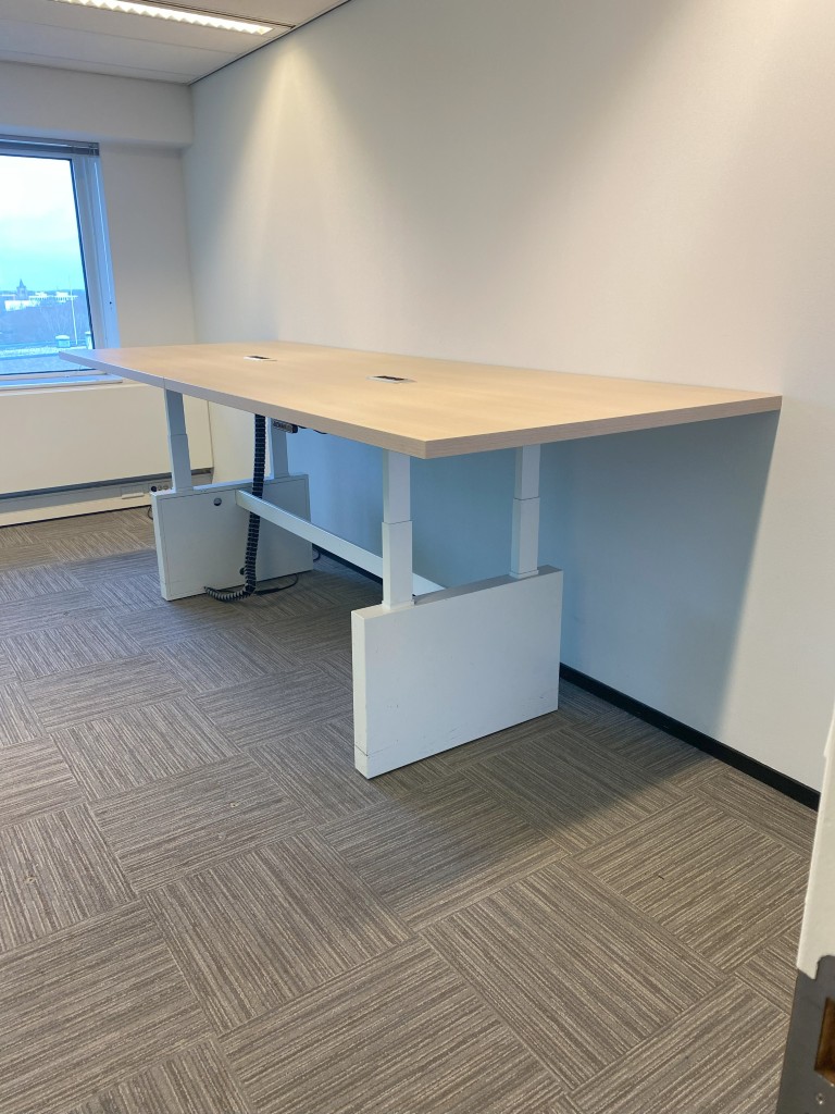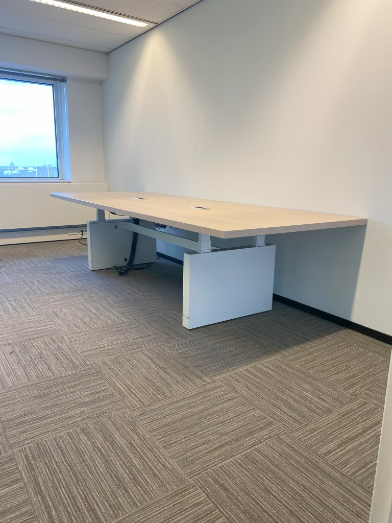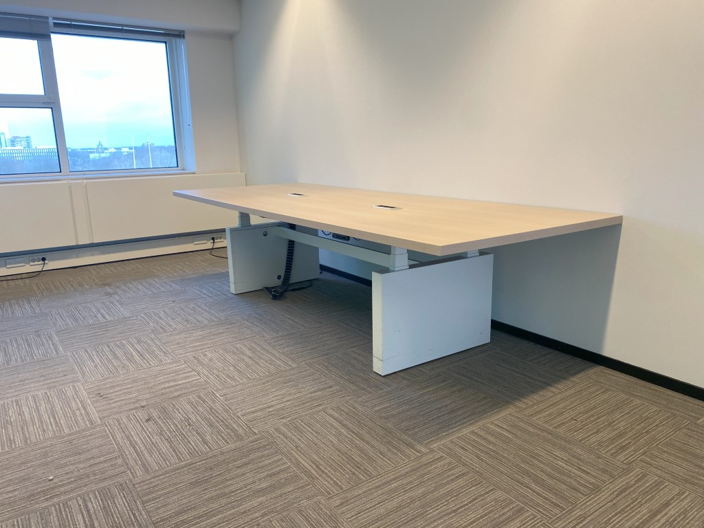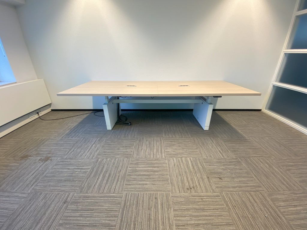 Vergadertafel is elektrisch verstelbaar van 62 – 130 cm.