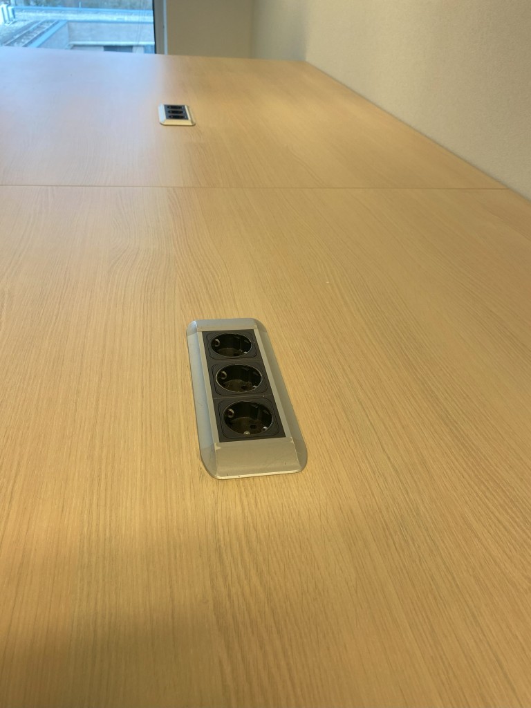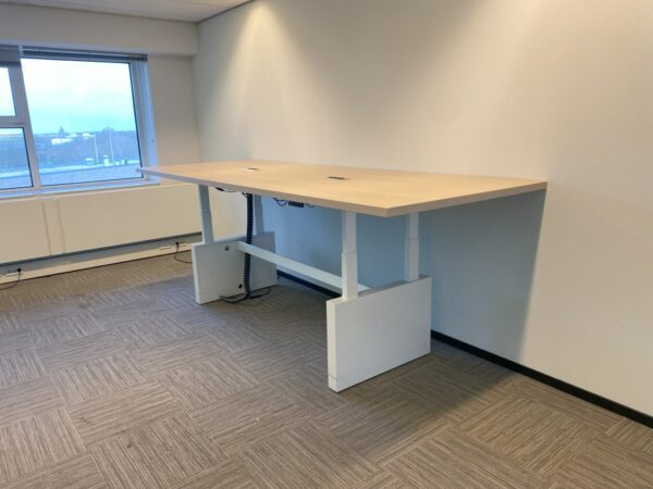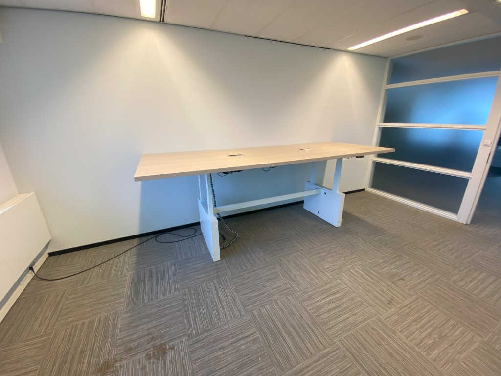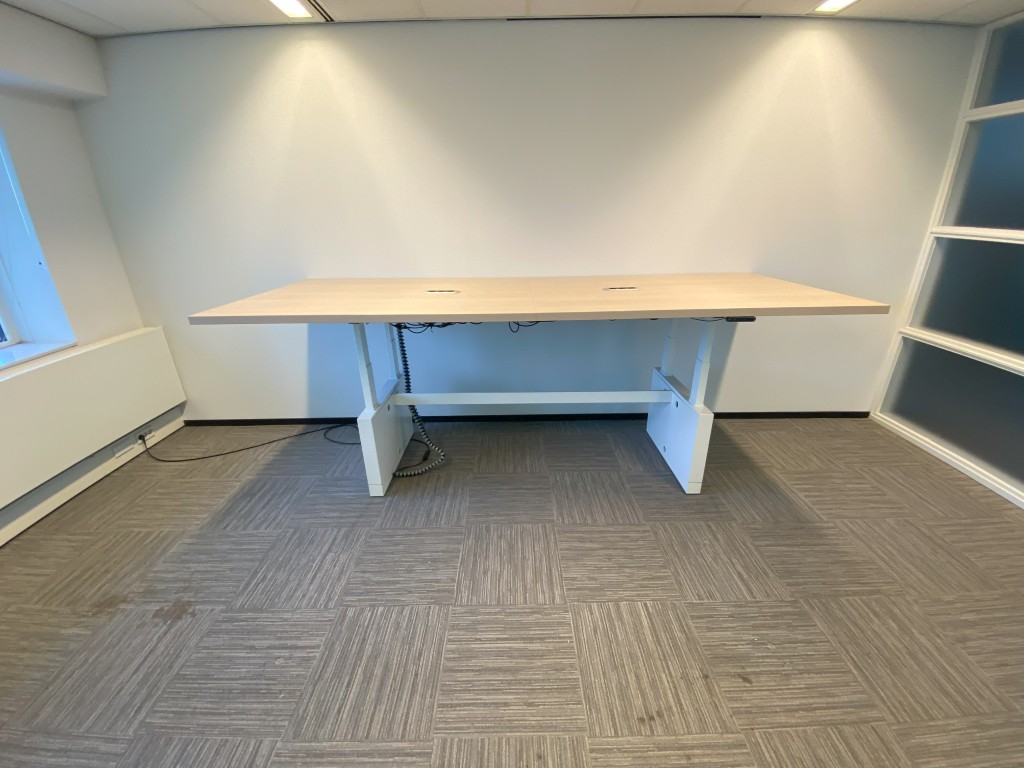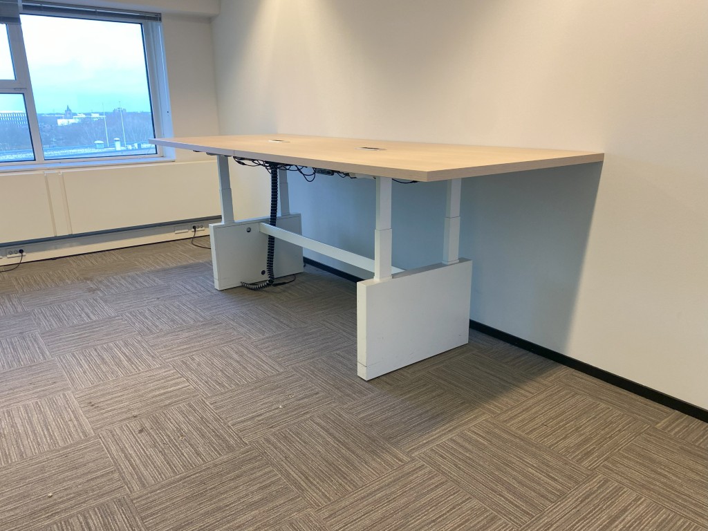 Vergadertafel is elektrisch verstelbaar van 62 – 130 cm.