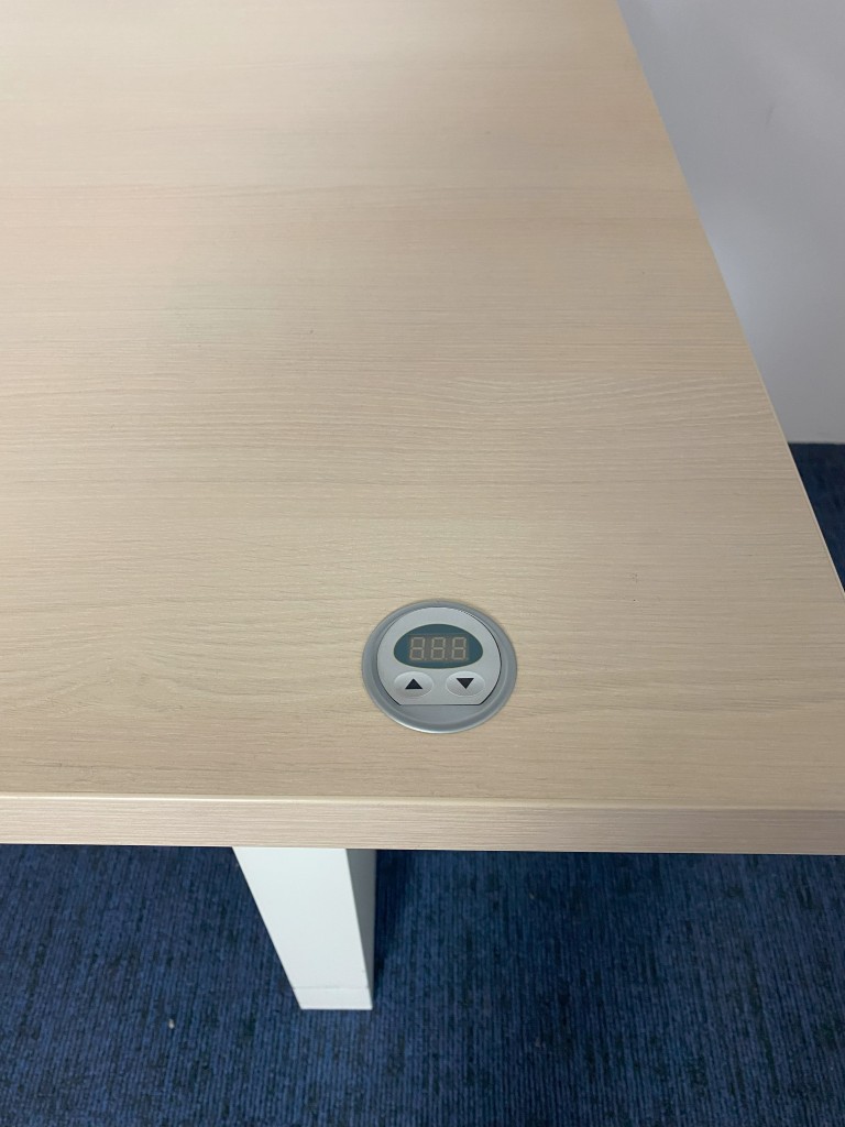 Vergadertafel is elektrisch verstelbaar van 62 – 130 cm.