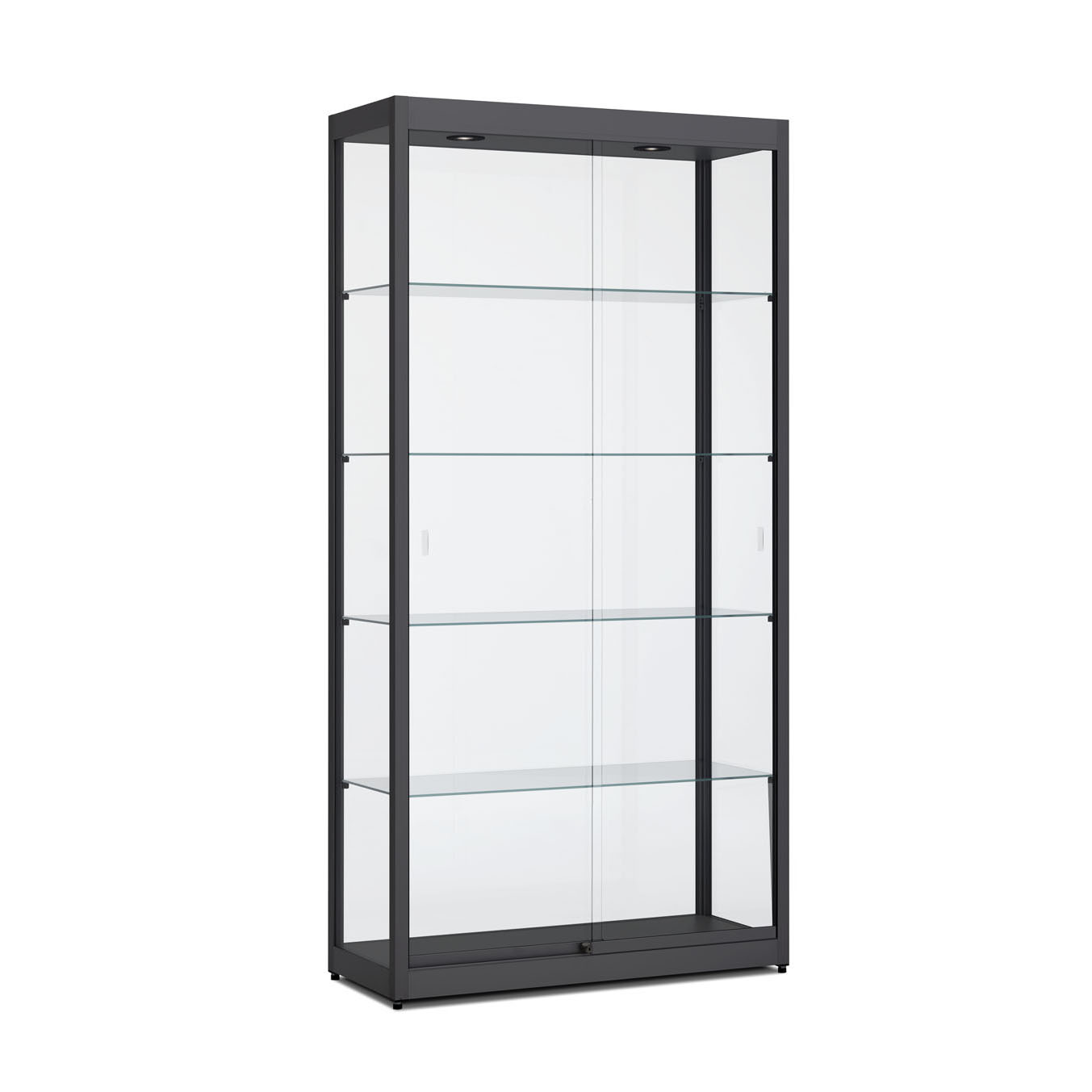 Vitrinekast Slide, zwart, H 200 x B 100 x D 40 cm., nieuw