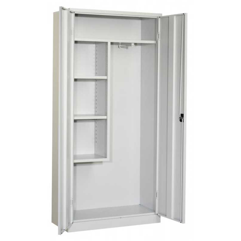 De schoonmaakkast is een eenvoudige stalen kast, welke beschikt over hanghaken voor o.a. bezems en dweilen. Het verschil in deze is het doorlopende tussenschot, waardoor er een extra legruimte ontstaat in de kast. De kast is daarnaast zeer geschikt voor schoonmaakmiddelen en aanverwante artikelen.